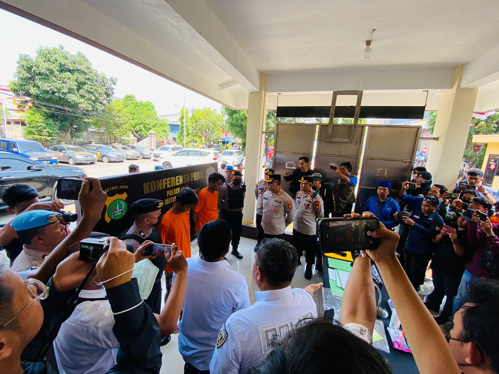 Kapolres Jakarta Utara Kombes Pol Gidion Arif Setyawan, S.I.K, S.H, M.Hum, serta Wakapolres Metro Jakarta Utara, AKBP Wiraga Dimas Tama, S.I.K, M.Si, dalam preskon di Mapolsek Koja, Kamis (7/9/2023) mengatakan, kejadian ini melibatkan tiga tersangka, dua di antaranya berhasil ditangkap sedangkan satu masih dalam Daftar Pencarian Orang (DPO). “Korban yang mengalami tindakan kejam ini, satu meninggal dunia, sementara satu lainnya masih kritis dan dirawat di rumah sakit,” ungkap Gidion kepada awak media.