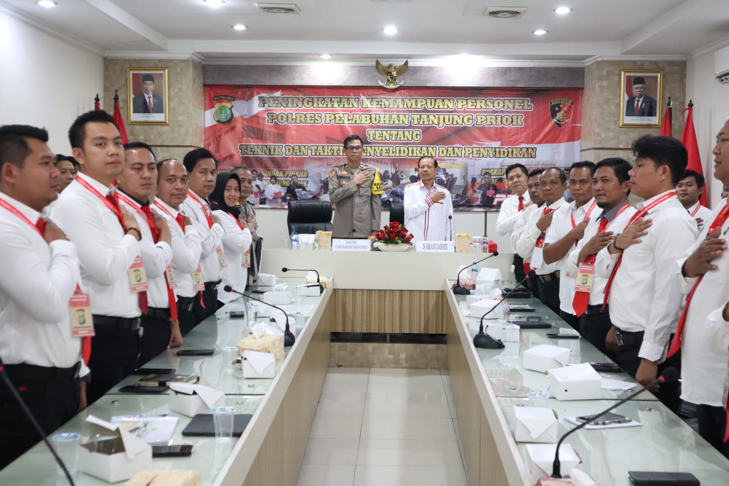 Kegiatan juga dihadiri Kompol Firdaus Prapanca, S.H. (Kabag SDM Polres Pelabuhan Tanjung Priok), AKP I.G.N.P. Krisnha Narayana, S.Tr.K., S.I.K., M.Si. (Kasatreskrim Polres Pelabuhan Tanjung Priok), AKP Anggoro Winardi, S.H. (Kasatresnarkoba Polres Pelabuhan Tanjung Priok), AKP Sumarlan, S.H.(Kasikum Polres Pelabuhan Tanjung Priok), dan Para Kanit, Panit, serta lima puluh Personel Satreskrim dan Satresnarkoba Polres Pelabuhan Tanjung Priok.