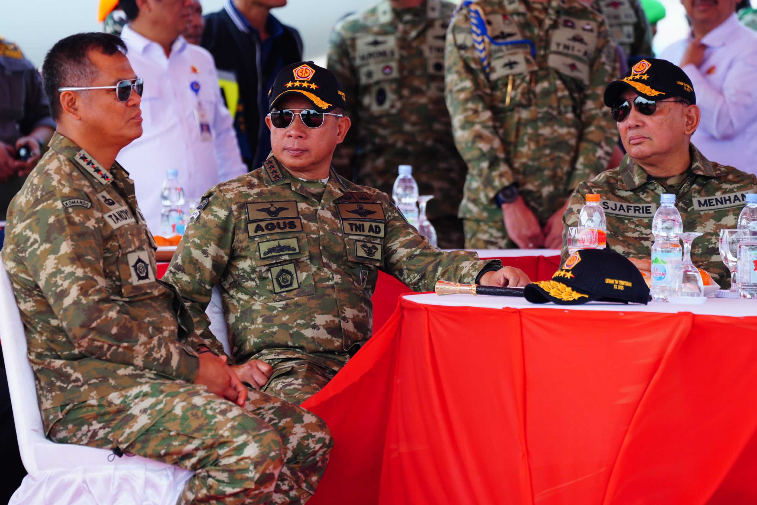 Menteri Pertahanan RI Sjafrie Sjamsoeddin, didampingi Panglima TNI Jenderal TNI Agus Subiyanto, Wakil Panglima TNI, Jaksa Agung, Kepala BPKP, serta sejumlah pejabat tinggi negara, turut menyaksikan langsung jalannya latihan. Kehadiran para pejabat tersebut mencerminkan dukungan penuh pemerintah terhadap penguatan kesiapsiagaan dan profesionalisme prajurit TNI.