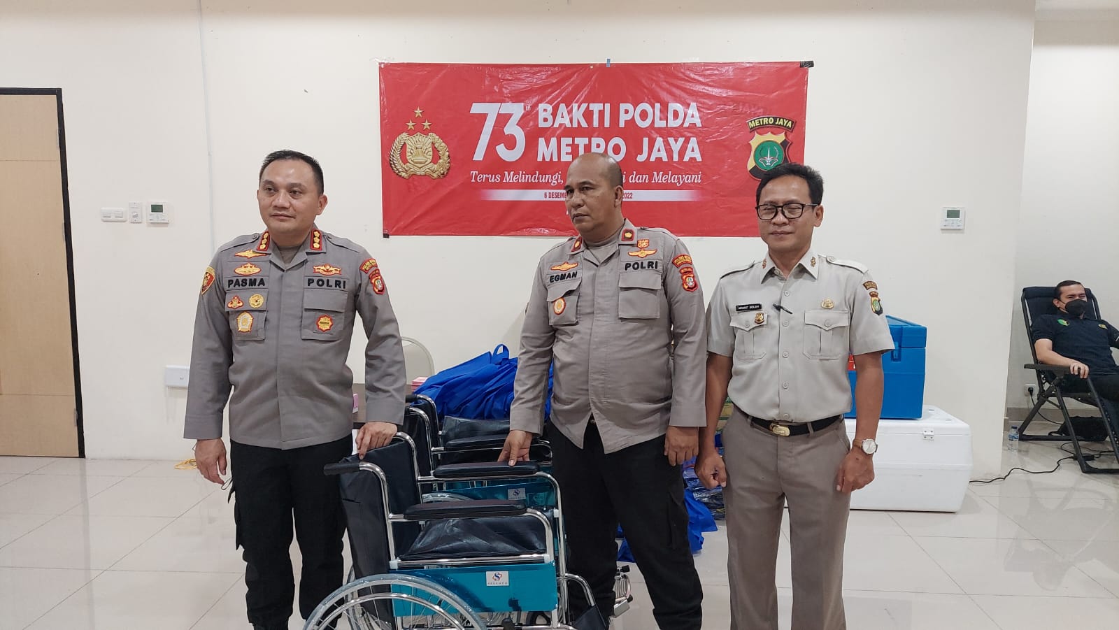 Lanjut pasma mengatakan, selain pelaksanaan donor darah Polres Jakarta Barat juga menyerahkan kursi roda.