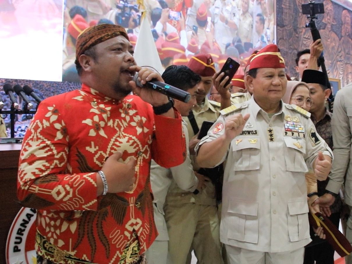 KS, YOGYAKARTA — Penyanyi dan pencipta lagu ‘Ojo Dibandingke’ Agus Purwanto alias Abah Lala mempersembahkan lagu yang diciptakannya itu kepada Prabowo Subianto.