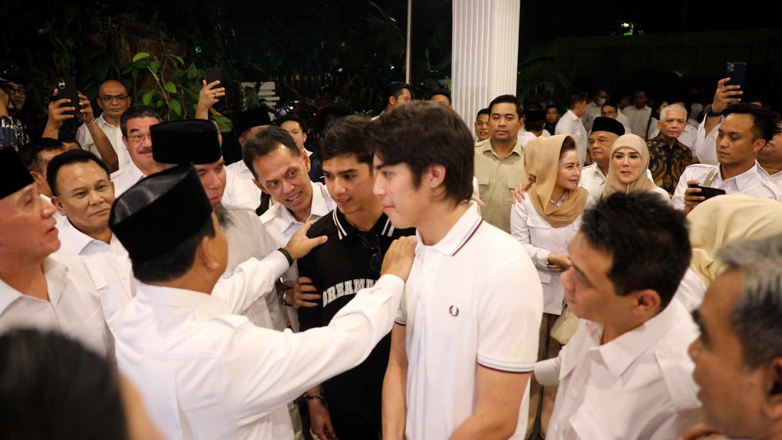 Kedua putra Ahmad Dhani itu pun bergegas maju ke depan berdampingan dengan Prabowo.
