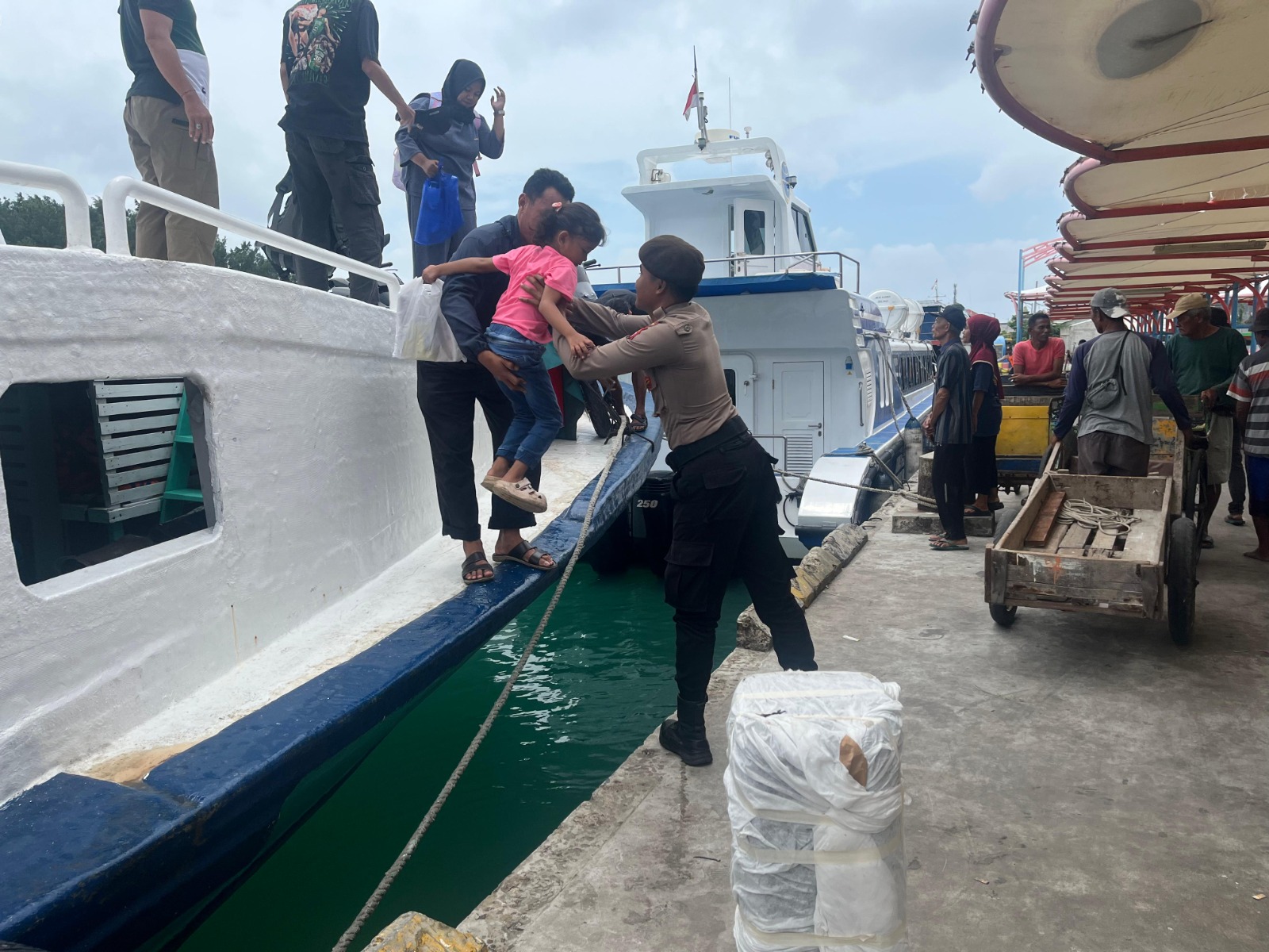 Anggota Polsek Kepulauan Seribu Utara Bantu Penumpang dan Awasi Keamanan di Dermaga Pulau Kelapa