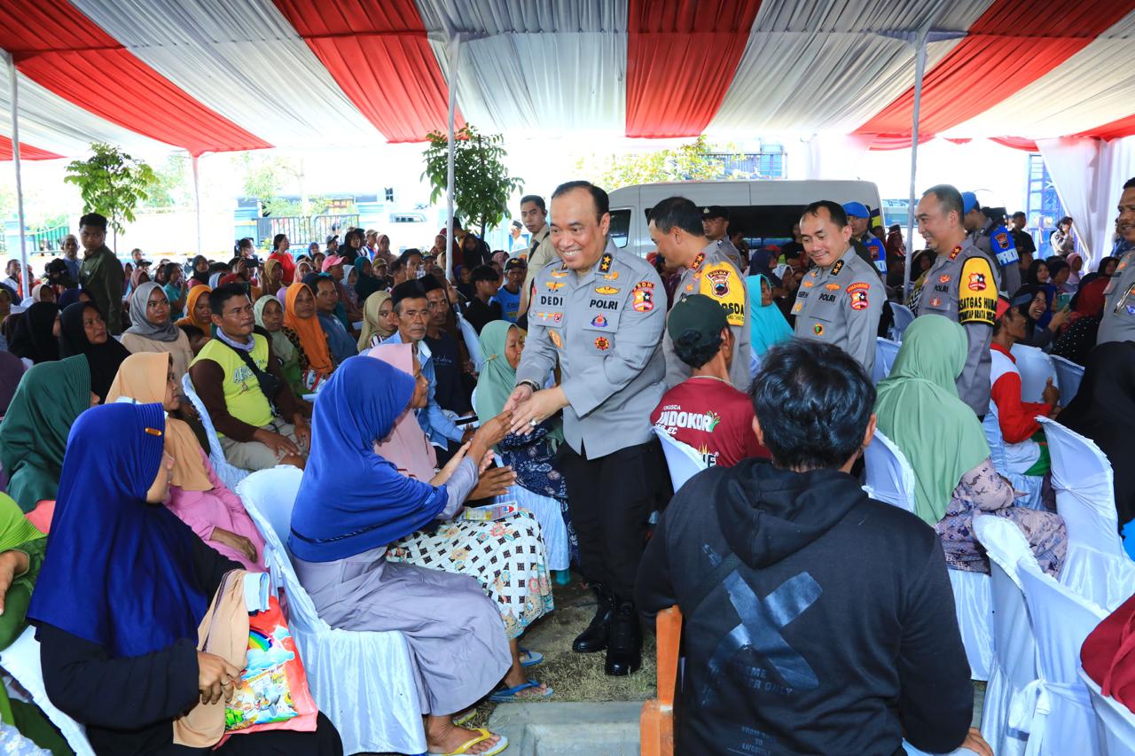 Irjen Dedi kemudian langsung menemui para orang tua dan berbincang santai sembari menghibur para pengungsi dengan candaan ringan untuk sejenak melegakan perasaan warga dan mengurangi beban yang dirasakan warga dengan bantuan yang diberikan.