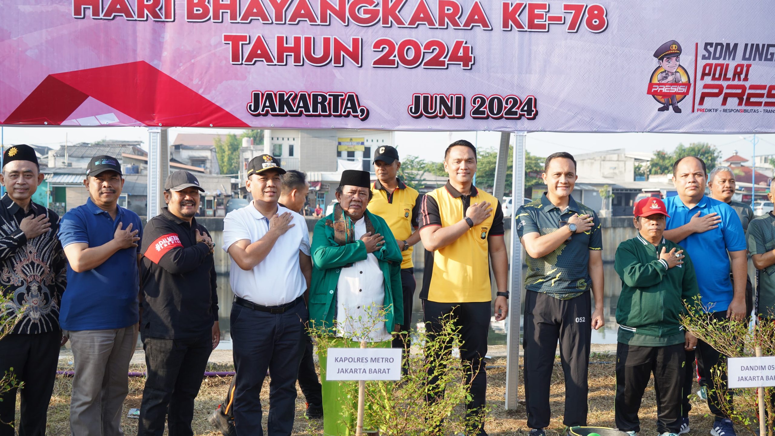 Bakti Sosial HUT Bhayangkara ke-78: Polres Jakbar dan Forkopimko serta Elemen Masyarakat Bersihkan Kali Mookervart, Tanam Pohon Hingga Bagi Sembako
