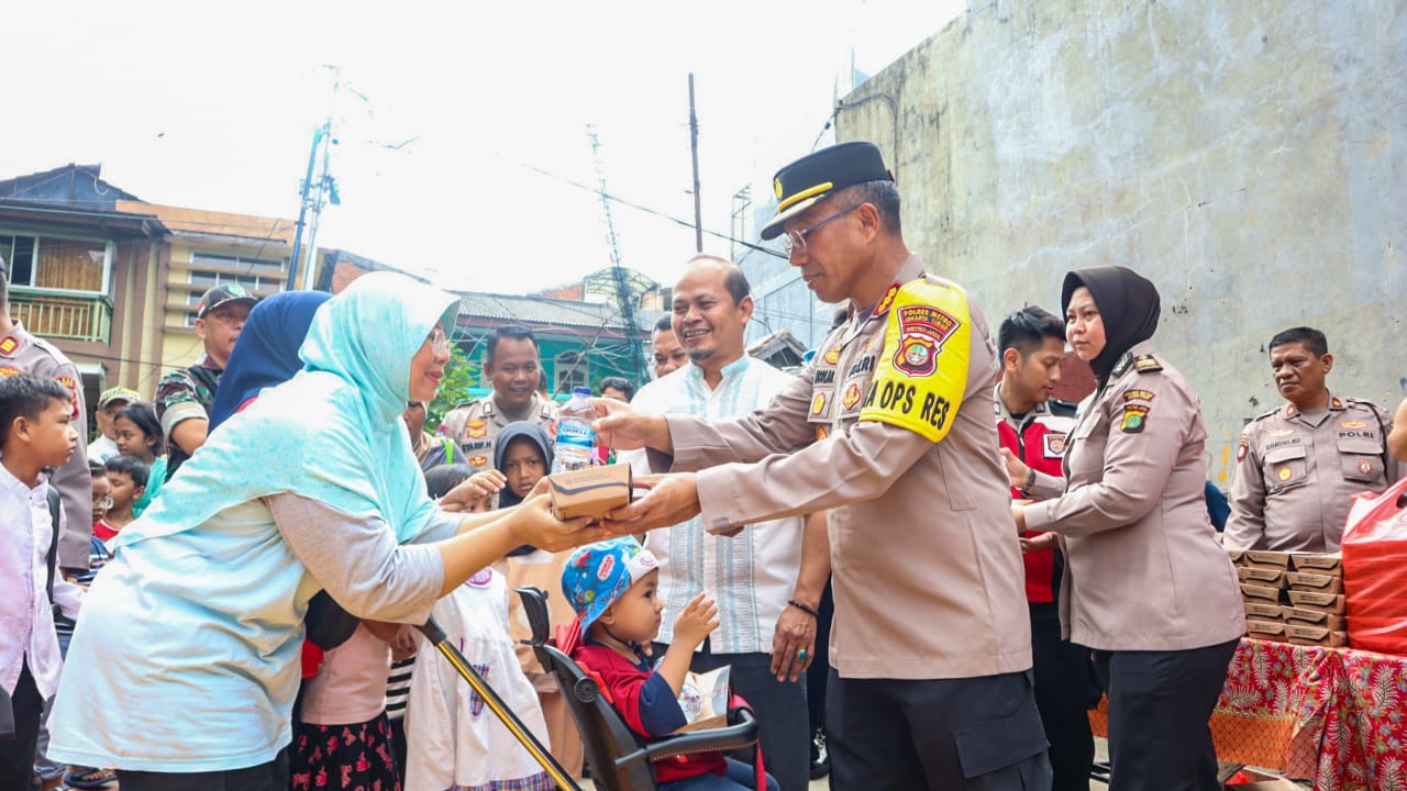 Kapolres Metro Jakarta Timur Kombes Pol Nicolas Ary Lilipaly bersama sejumlah Pejabat Utama dan Kapolsek Matraman melaksanakan kegiatan Jum’at Peduli dengan membagikan 300 Nasi Kotak dan Air Mineral gratis.