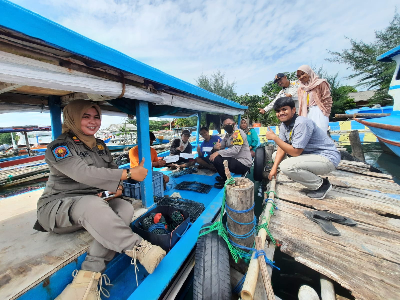 Kali ini Bhabinkamtibmas Pulau Lancang Kepulauan Seribu Selatan Briptu Tulus bersinergi dengan Satpol PP Kelurahan Lancang menyambangi warganya yang berprofesi sebagai nelayan di kapalnya sambil membagikan nasi kotak, Jum’at (06/01/2023).