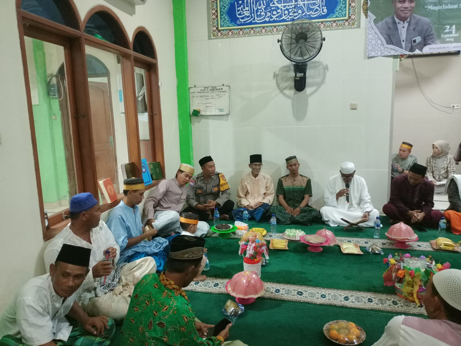 KS, JAKARTA – Bhabinkamtibmas Pulau Kelapa, Aipda Sahrizal, menghadiri kegiatan doa bersama dalam rangka memperingati Maulid Nabi Muhammad SAW 1446 H yang digelar di Masjid Jami Al-Janatun Naim, Pulau Kelapa Dua, Kelurahan Pulau Kelapa, Selasa (24/09/2024).