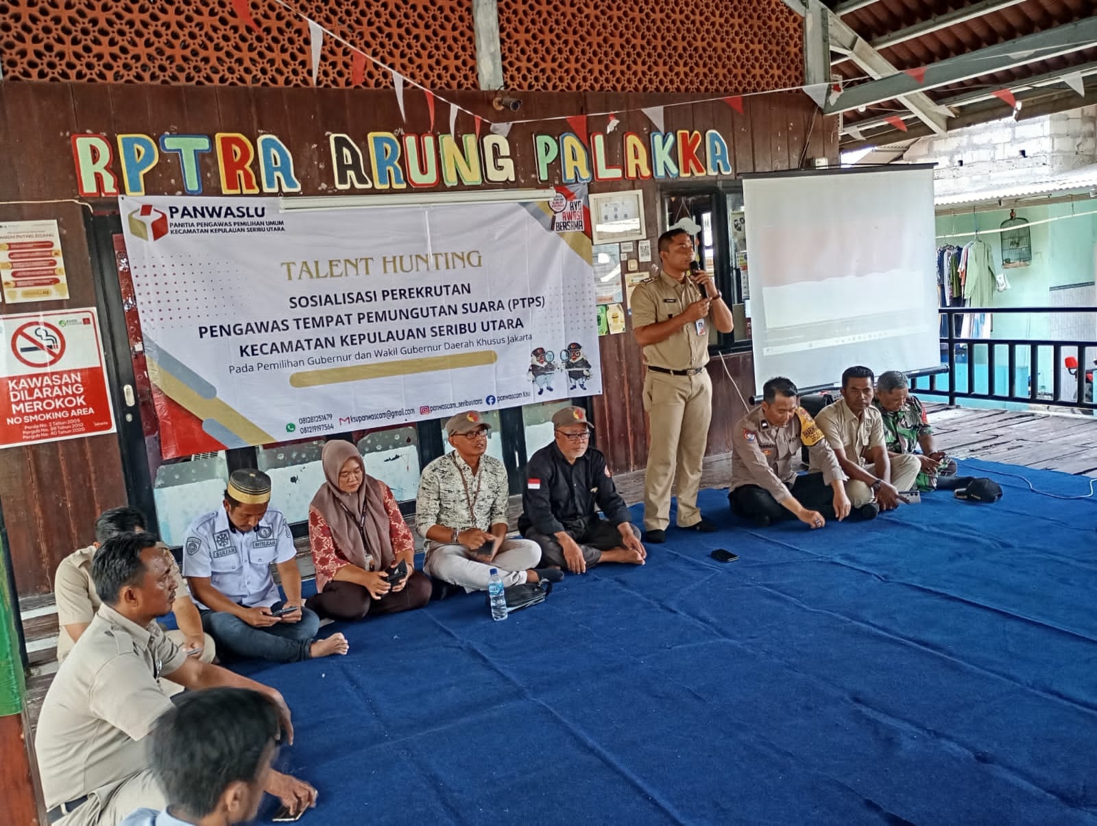 KS, JAKARTA – Bhabinkamtibmas Pulau Kelapa, Polres Kepulauan Seribu, Aipda Sahrizal menghadiri Kegiatan Talent Hunting Sosialisasi Pembentukan Pengawas TPS yang diselenggarakan oleh Panwaslu Kepulauan Seribu Utara. Acara tersebut berlangsung di RPTRA Arung Palakka, Kelapa Dua RT 02/ RW 05, Kelurahan Pulau Kelapa, pada Rabu (09/10/2024).