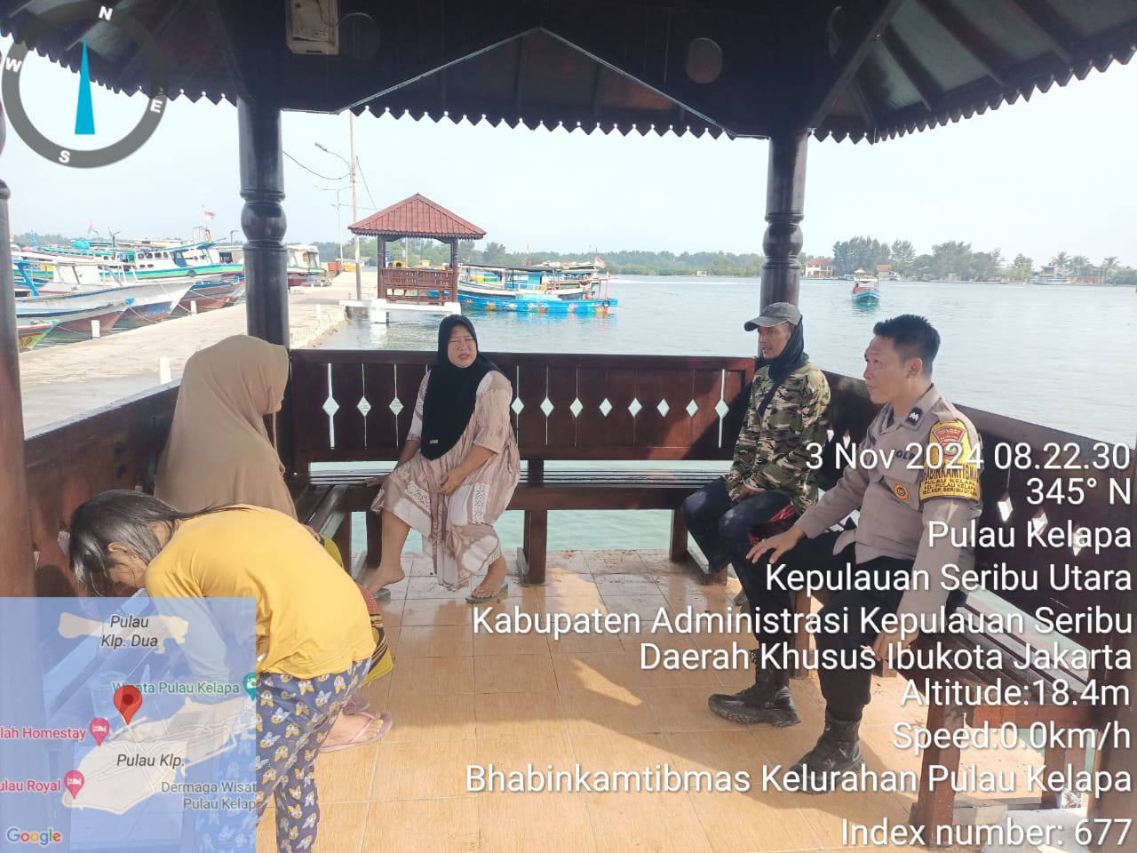 KS, JAKARTA – Bhabinkamtibmas Pulau Kelapa, Polres Kepulauan Seribu, Aipda Sahrizal, melaksanakan kegiatan sambang ke rumah-rumah ibu-ibu warga Pulau Kelapa, Kepulauan Seribu Utara, pada Minggu (03/11/2024). Dalam kegiatan ini, Aipda Sahrizal mengajak para ibu untuk berperan aktif dalam menjaga keamanan lingkungan, khususnya dalam mencegah terjadinya tawuran di kalangan remaja.
