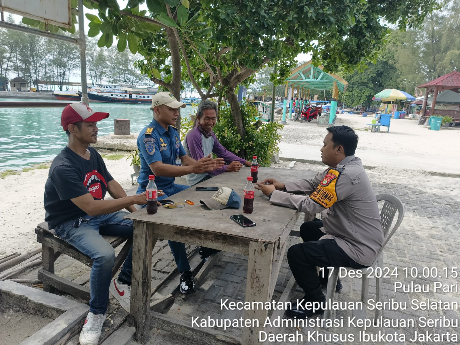 KS, JAKARTA – Dalam upaya menjaga keamanan dan ketertiban pasca Pilkada DKI Jakarta 2024, Bhabinkamtibmas Pulau Pari, Polres Kepulauan Seribu, Bripka Khohim Chovivi, melaksanakan sambang ke warga pada Rabu (18/12/2024). Kegiatan ini dilakukan sebagai bentuk pendekatan kepada masyarakat untuk mengajak mereka menciptakan suasana yang aman, sejuk, dan kondusif meskipun terdapat perbedaan pilihan politik.