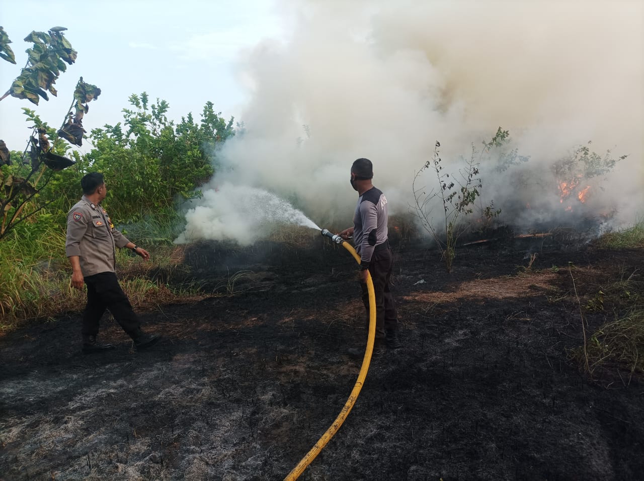 KS, JAKARTA – Bhabinkamtibmas Pulau Pari, Polres Kepulauan Seribu, Bripka Khohim Chovivi, turut membantu petugas Pemadam Kebakaran (Damkar) dalam memadamkan kebakaran lahan hutan ilalang di sebelah timur Pantai Perawan, wilayah RT001/04, Kelurahan Pulau Pari, Kecamatan Kepulauan Seribu Selatan, pada Sabtu (18/05/2024).