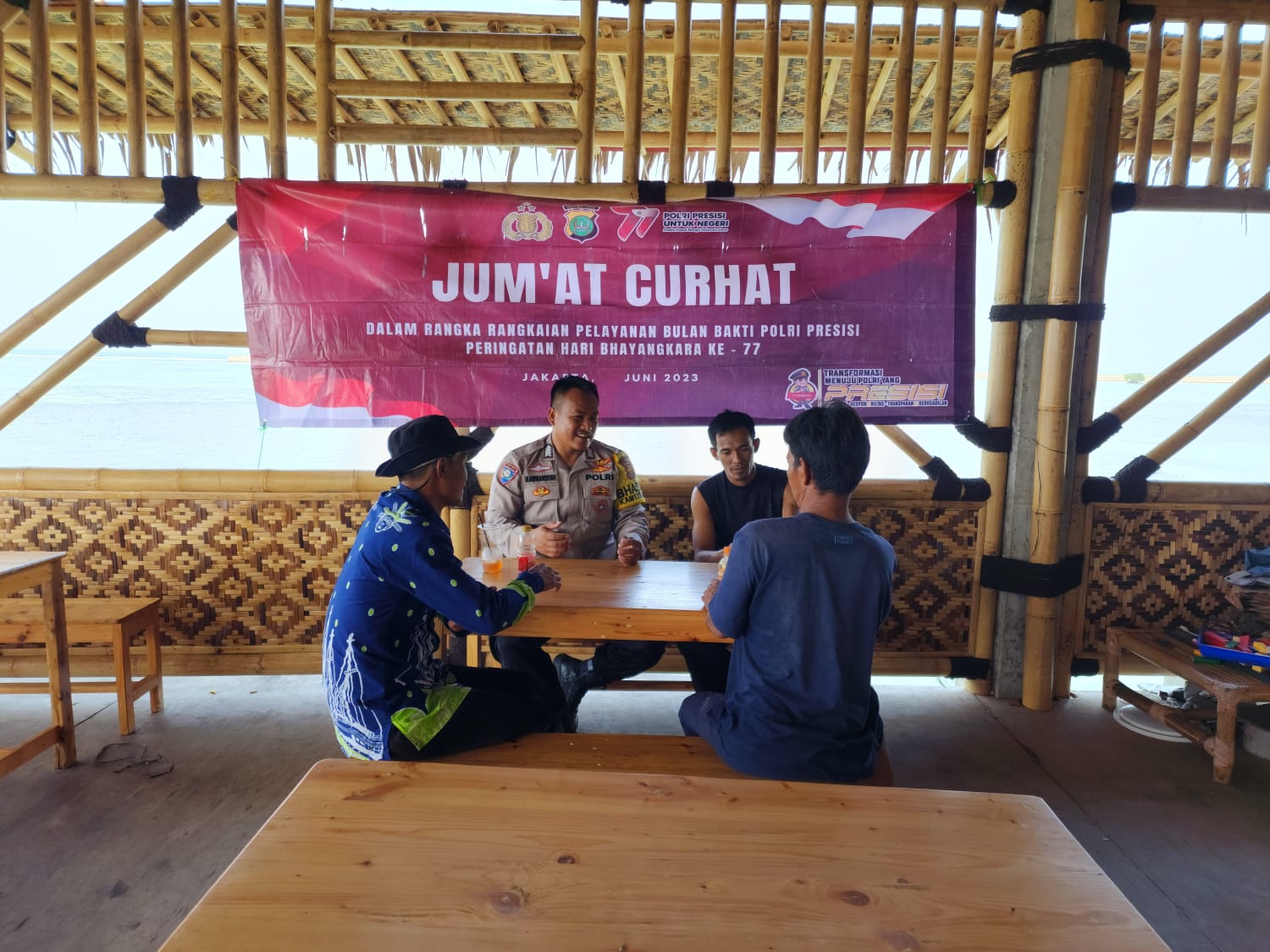 KS, JAKARTA – Bhabinkamtibmas Pulau Pramuka dari Polres Kepulauan Seribu Bripka Marwansyah melaksanakan giat “Jumat Curhat” di Pulau Pramuka untuk memperkuat hubungan dengan masyarakat dan mencegah kenakalan remaja. Alhamdulillah, hasil dari kegiatan ini menunjukkan keluhan yang menonjol telah berkurang, dan kehadiran Polisi, Satpol PP, serta para RT/RW, LMK, dan FKDM Pulau Pramuka dalam patroli malam telah berhasil mengurangi aktivitas anak-anak nongkrong di kawasan tersebut, Jumat (4/8/2023).