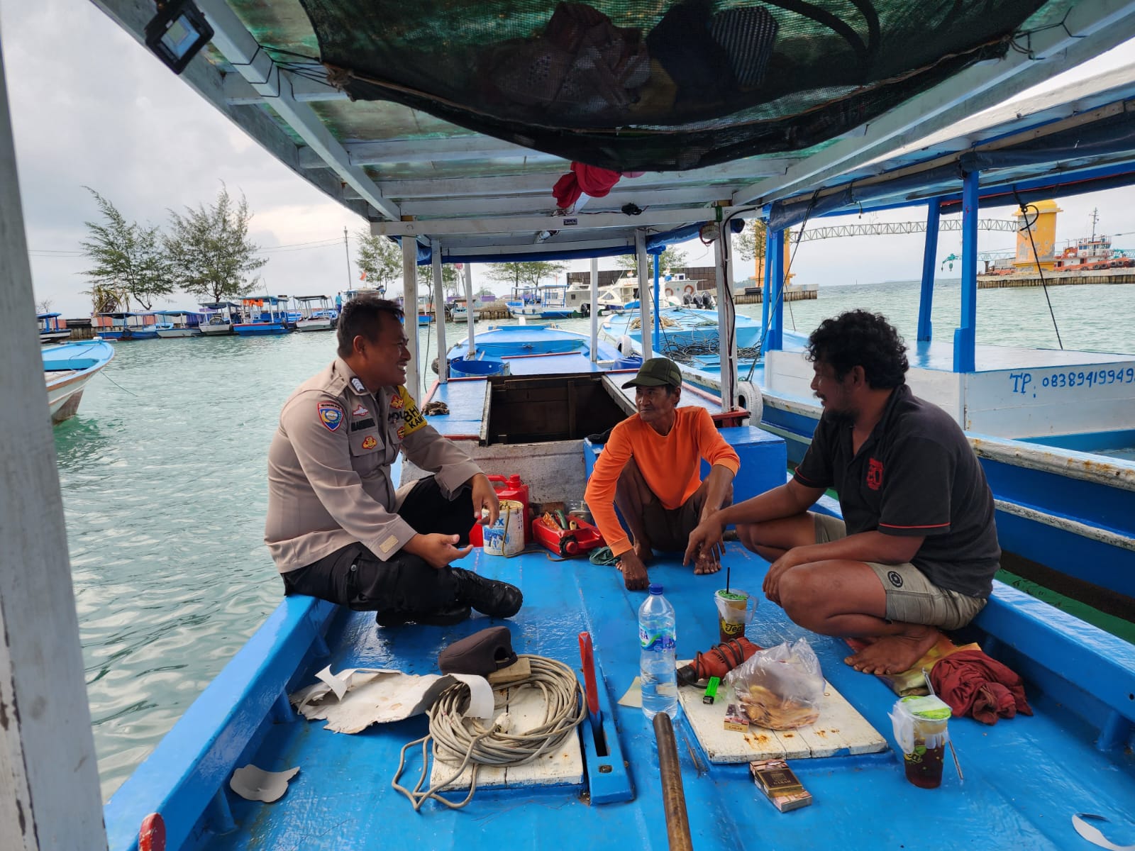 Bripka Marwansyah, yang merupakan polisi yang bertugas sebagai Bhabinkamtibmas di Pulau Pramuka, memanfaatkan momen tersebut untuk mengajak pemilik kapal kayu serta awak kapal untuk selalu memprioritaskan keselamatan dalam melakukan pelayaran.