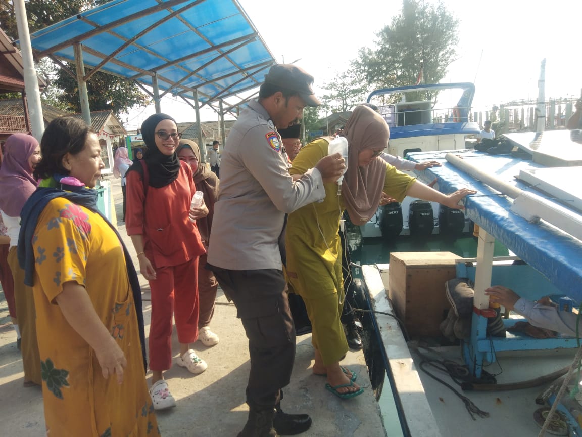KS, JAKARTA – Bhabinkamtibmas Pulau Sebira, Bripka Amirullah Maliki, memberikan bantuan dan mendampingi seorang warga Pulau Sebira yang mengalami pendarahan saat hamil menuju fasilitas kesehatan di Pulau Kelapa.