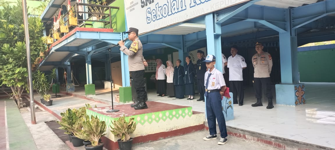 Bhabinkamtibmas Pulau Untung Jawa Imbau Kenakalan Remaja dalam Upacara Bendera SMPN 285
