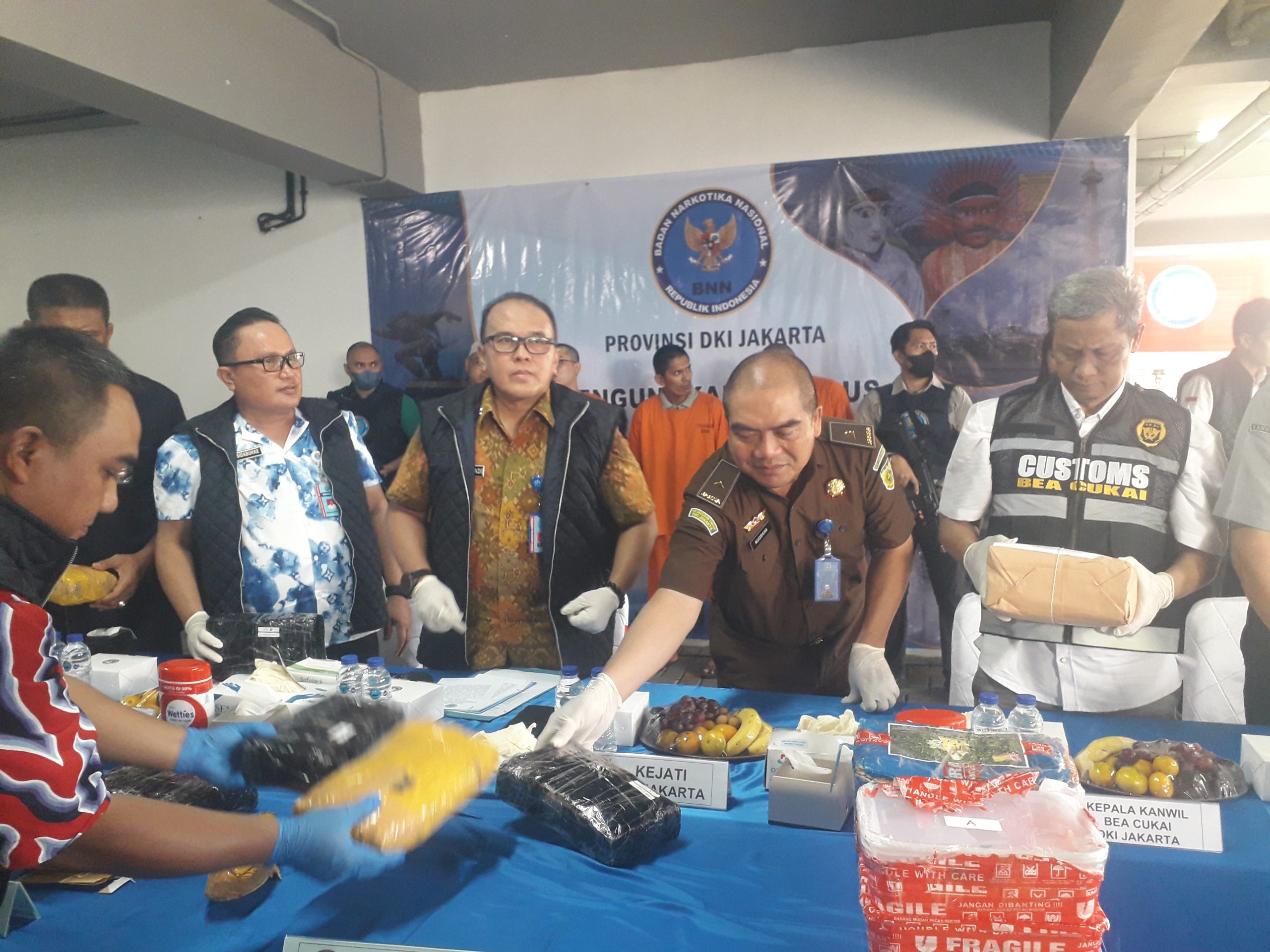 “Bidang Pemberantasan dan Intelijen BNN Provinsi DKI Jakarta, telah melakukan pengungkapan kasus penyalahgunaan dan peredaran gelap narkotika di wilayah DKI Jakarta dengan total barang bukti sabu dengan berat bruto lebih kurang 205,49 gram dan ganja dengan berat bruto lebih kurang 9.291,4 gram,” jelasnya.