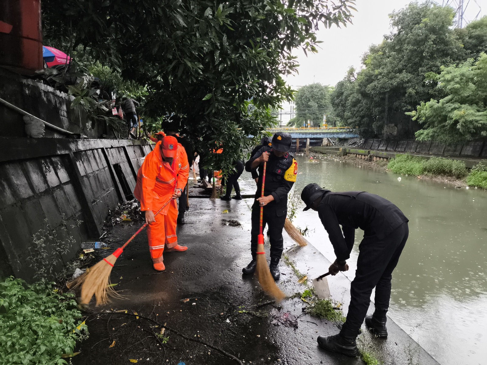 Sebanyak satu kompi atau sekitar 80 personel gabungan diterjunkan untuk melakukan pembersihan sampah dan sedimentasi di bantaran kali. Aksi tersebut juga melibatkan unsur pemerintah kelurahan serta masyarakat setempat, mulai dari lurah, pengurus RT dan RW, hingga Bhabinkamtibmas dan Babinsa.