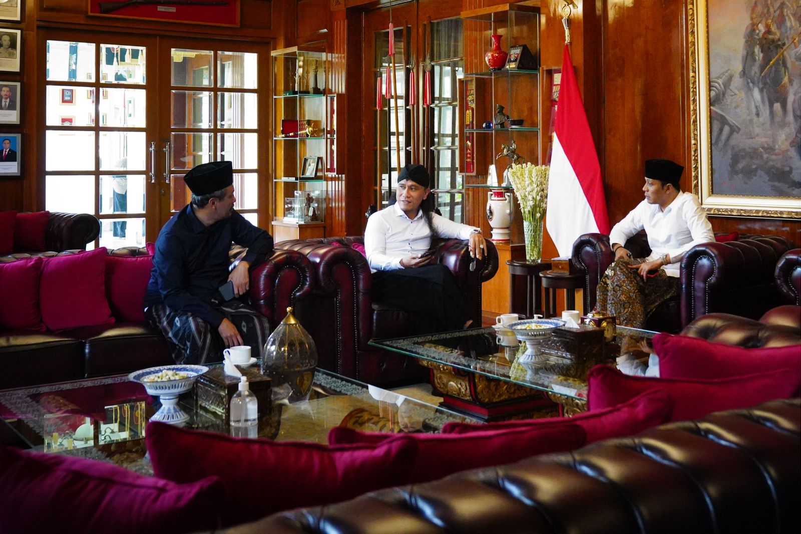 “Sudah pernah ke sini belum?” tanya Prabowo. Gus Kautsar mengatakan dirinya sebelumnya sudah pernah bertama di kantor Kemhan dan takjub dengan perubahan yang terjadi di Kemhan, yang kini lebih hidup dengan lukisan, ornamen, dan gambar-gambar sarat nilai sejarah.