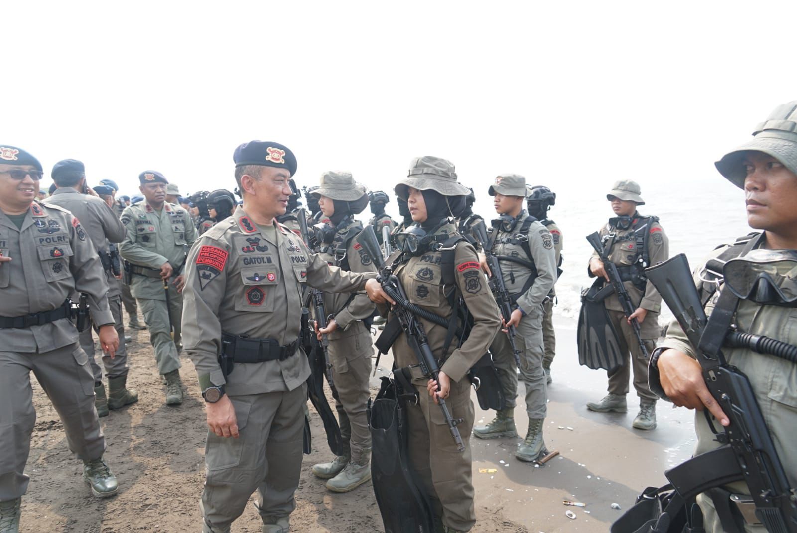 KS, JAKARTA – Sat Brimob Polda Metro Jaya melaksanakan kegiatan Upacara Penutupan Latihan Peningkatan Kemampuan Mobilitas Udara Dan Infiltrasi Bawah Air, Sidmount Dan DPV Diver yang dipimpin langsung oleh Komandan Satuan Brimob Polda Metro Jaya Kombes Pol. Gatot Mangkurat Putra P.J., S.I.K didampingi Wakil Komandan Satuan Brimob Polda Metro Jaya AKBP Dr (C) Bhakti Suhendarwan, SIK., MTCP., CFE., CFrA., CHFI. beserta Pju Satuan Brimob Polda Metro Jaya Di Pantai Tanjung Pasir Tangerang.