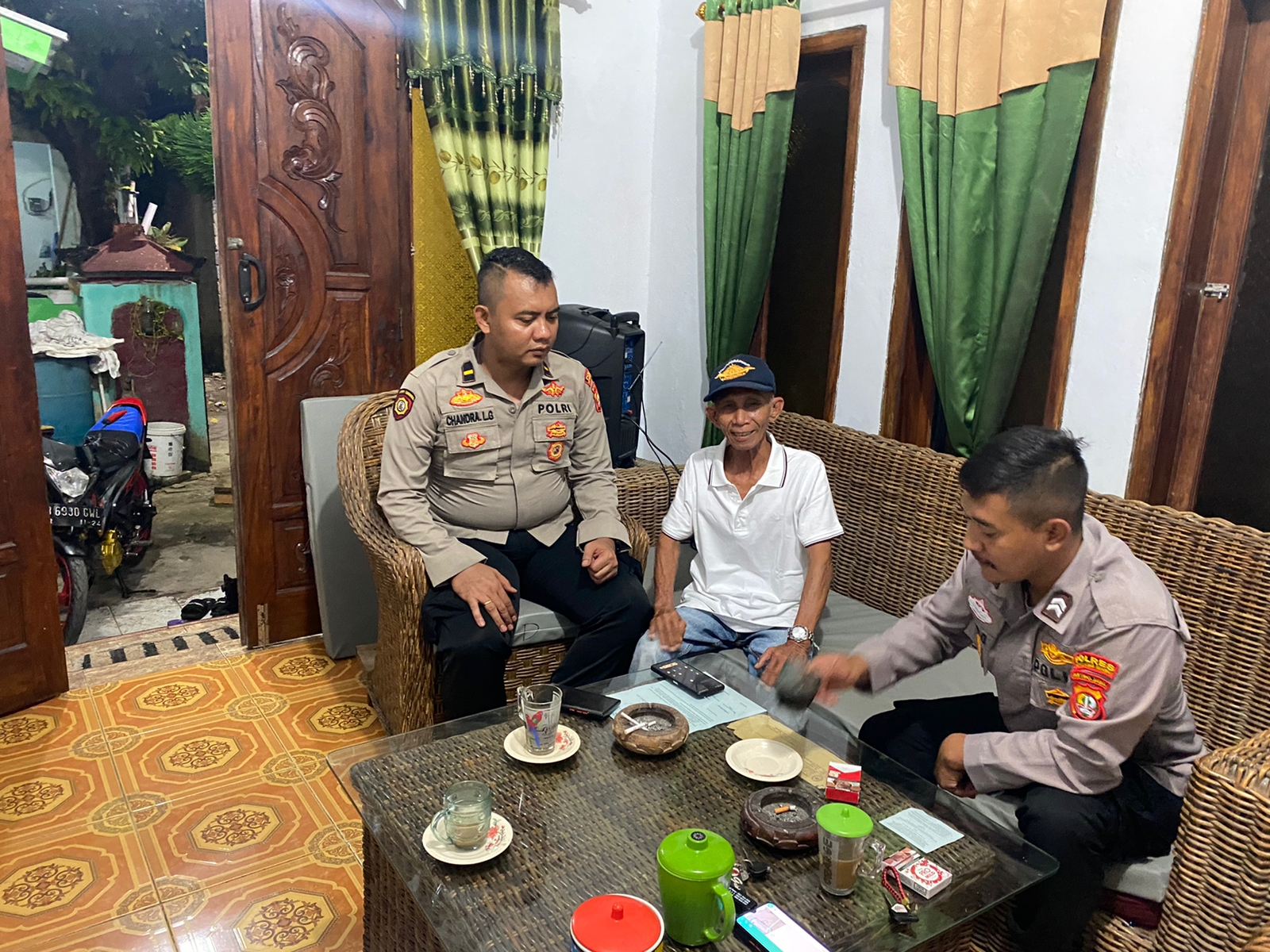 “Bersama Pak Bhabin Pulau Kelapa, kami melaksanakan kegiatan sambang malam kepada Bapak Syaiful yang merupakan salah satu tokoh daerah di wilayah Pulau Kelapa ini”, ujar Chandra.