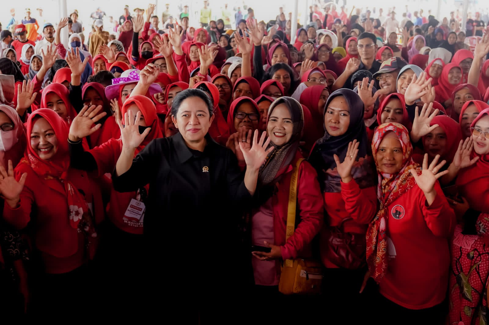 Mereka menunggu Puan sejak siang, padahal acara baru berlangsung sore hari. Saat tiba di lokasi, Puan mendapat sambutan meriah dan hangat dari warga.