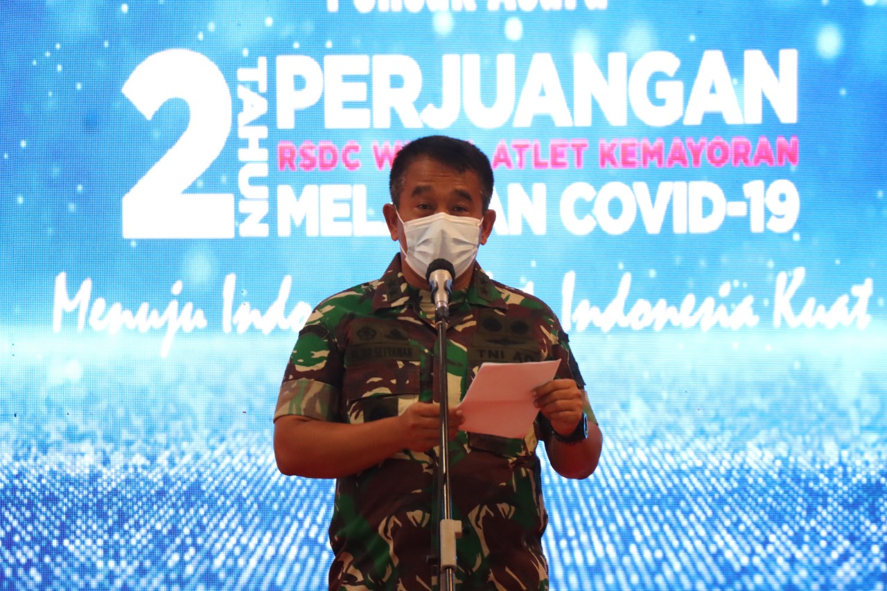Dalam upacara peringatan 2 Tahun Perjuangan RSDC Wisma Atlet Kemayoran dalan Melawan Covid-19, Kepala BNPB sekaligus Ketua Satuan Tugas (Satgas) Penanganan Covid-19, Letjen TNI Suharyanto, yang dalam hal ini diwakili oleh Deputi Bidang Penanganan Darurat BNPB, Mayjen TNI Fajar Setyawan, memberikan ucapan terima kasih kepada para pejuang kemanusiaan, mulai dari tenaga kesehatan, tenaga medis, tenaga farmasi, tenaga kebersihan, relawan dan seluruh komponen yang terlibat dalam mengukir sejarah perjuangan RSDC selama dua tahun.