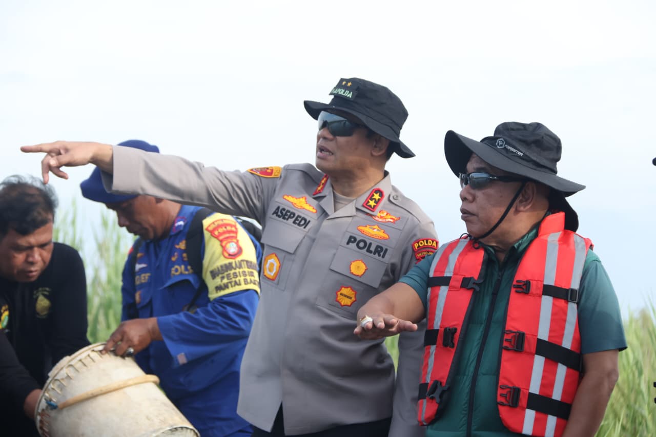 KS, BEKASI — Kapolda Metro Jaya Irjen Pol Asep Edi Suheri mengecek lahan tambak udang di Kampung Bagedor, Desa Pantai Harapan Jaya, Kecamatan Muara Gembong, Kabupaten Bekasi, Rabu (4/2/2026). Pengecekan dilakukan untuk memastikan kesiapan tambak sebagai bagian dari ekosistem rantai pasok bahan baku Satuan Pelayanan Pemenuhan Gizi (SPPG) Polda Metro Jaya.