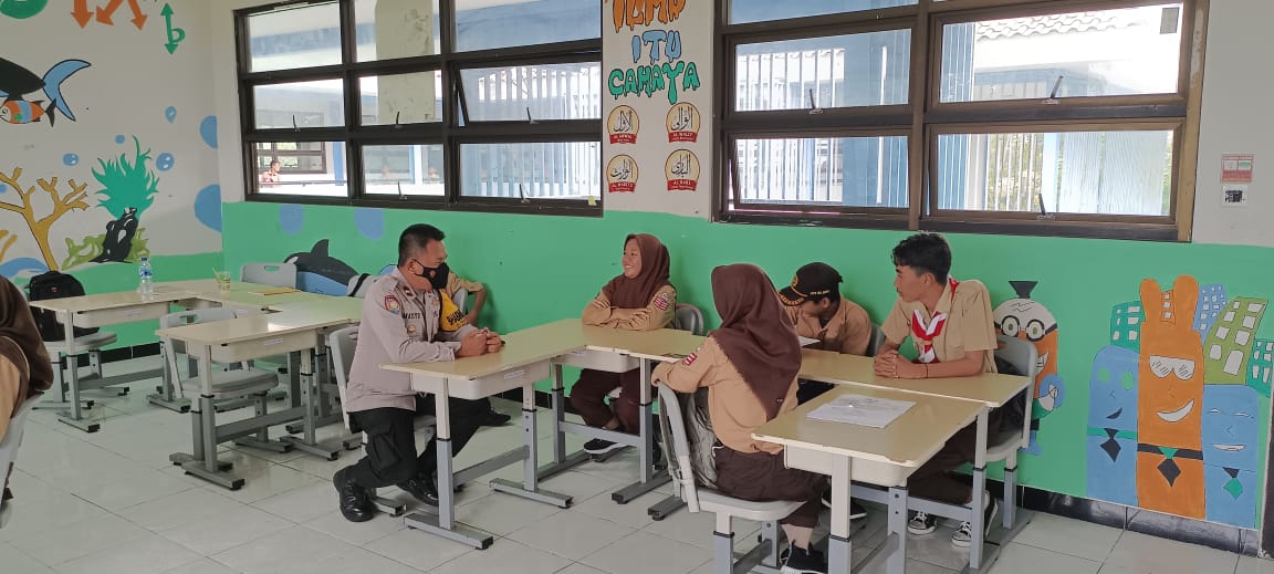 Polres Kepulauan Seribu melalui anggota Bhabinkamtibmas Pulau Untung Jawa AIPDA Masito melaksanakan kegiatan Police Goes to School di SMPN 285 Jakarta Pulau Untung Jawa.