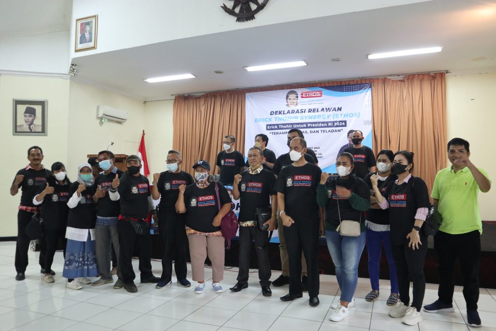 Deklarasi pertama digelar di Gedung Joang 45, Menteng, Jakarta, selasa (08/03/22) yang dipimpin Ketua Umum Ethos Albert. Dia menyampaikan, Erick sosok yang bisa menjadi penerus kepemimpinan Presiden Joko Widodo yang habis masa jabatannya pada 2024 nanti.