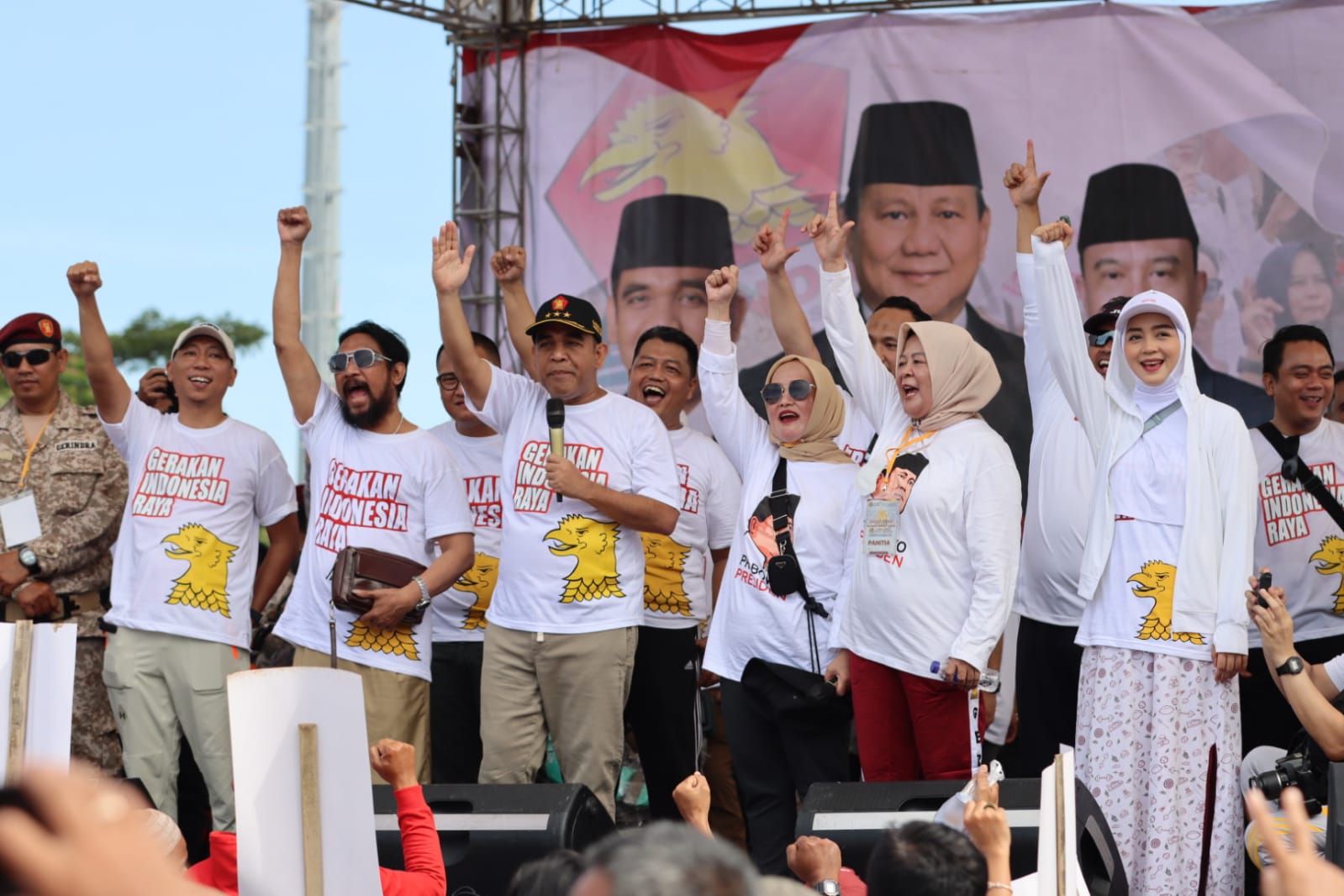 “Kita berkumpul di sini datang dari kota-kota, dari kampung-kampung, dari desa-desa. Semua yang ada di sini ada yang terpelajar, ada yang orang biasa, ada pensiunan, ada yang pejabat. Dan berbagai macam etnis ada di sini, ada Lampung, ada Jawa, ada Padang, ada Madura, ada Bugis. Kita dipersatukan di tempat ini karena kita berharap 2024 presiden kita siapa?,” tanya Muzani ke ribuan hadirin.