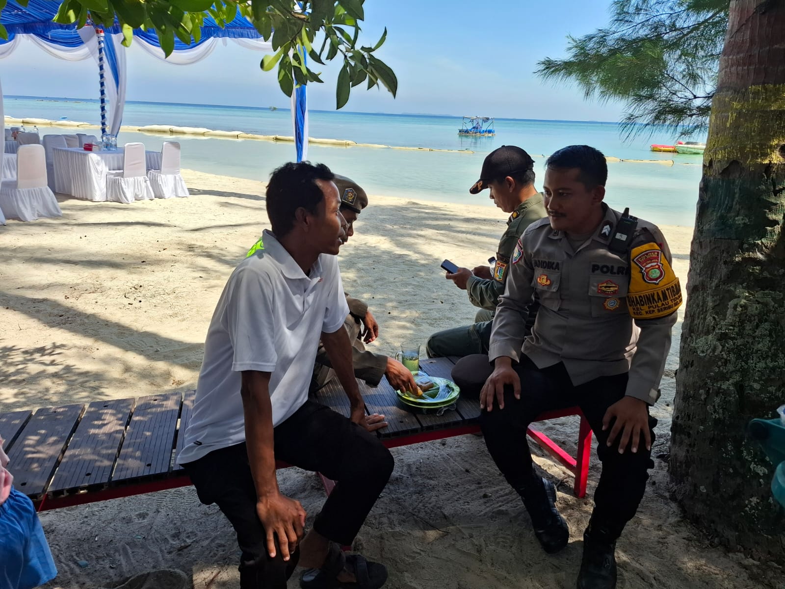 Dalam kegiatan tersebut, Briptu Andika menyambangi Ahmad, warga Kelurahan Pulau Tidung, untuk berdialog dan menyampaikan sejumlah pesan kamtibmas. Ia menegaskan bahwa sinergi antara masyarakat dan kepolisian sangat dibutuhkan dalam mencegah potensi gangguan keamanan. Warga diajak lebih peduli terhadap isu-isu kamtibmas dan saling menjaga kekompakan untuk mencegah tindakan yang meresahkan, terutama kejahatan *3C (Curat, Curas, Curanmor)*.