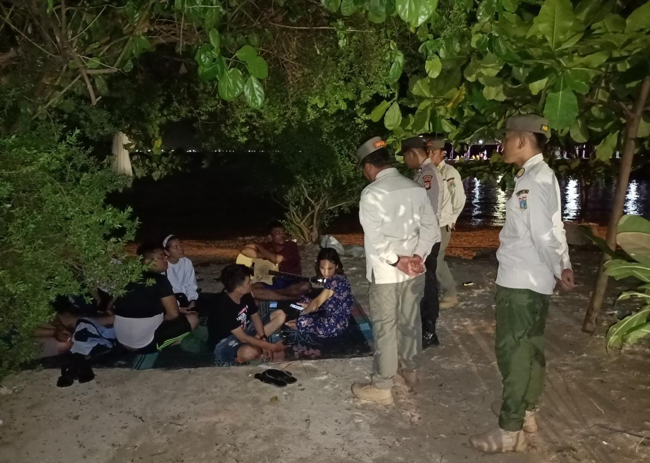 Selain memastikan situasi aman, tim patroli juga memberikan imbauan kepada remaja dan pelajar yang berada di sekitar Pulau Harapan.