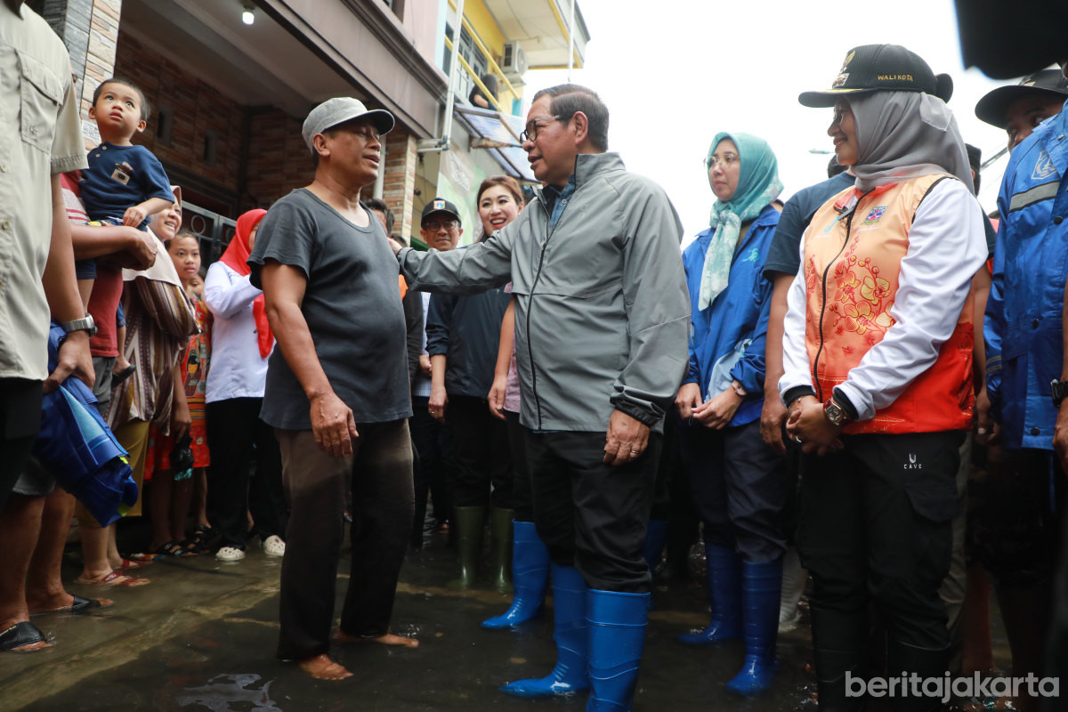 KS, JAKARTA – Gubernur DKI Jakarta, Pramono Anung menyambangi warga penyintas banjir di Posko Pengungsian Masjid Jami Baitul Rahman, Jalan Dharma Wanita IV, RW 01, Rawa Buaya, Cengkareng, Jakarta Barat, Sabtu (24/1/2026).