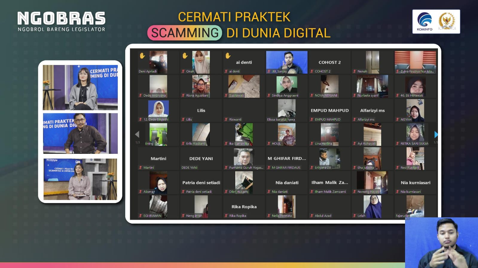 Kementerian Komunikasi dan Informasi (Kominfo) membahas bagaimana agar masyarakat tak terjerumus dalam penipuan online, dalam NGOBRAS atau Ngobrol Bareng Legislator dengan tema “Cermati Praktik Scamming di Dunia Digital” pada Rabu, 7 Februari 2024.