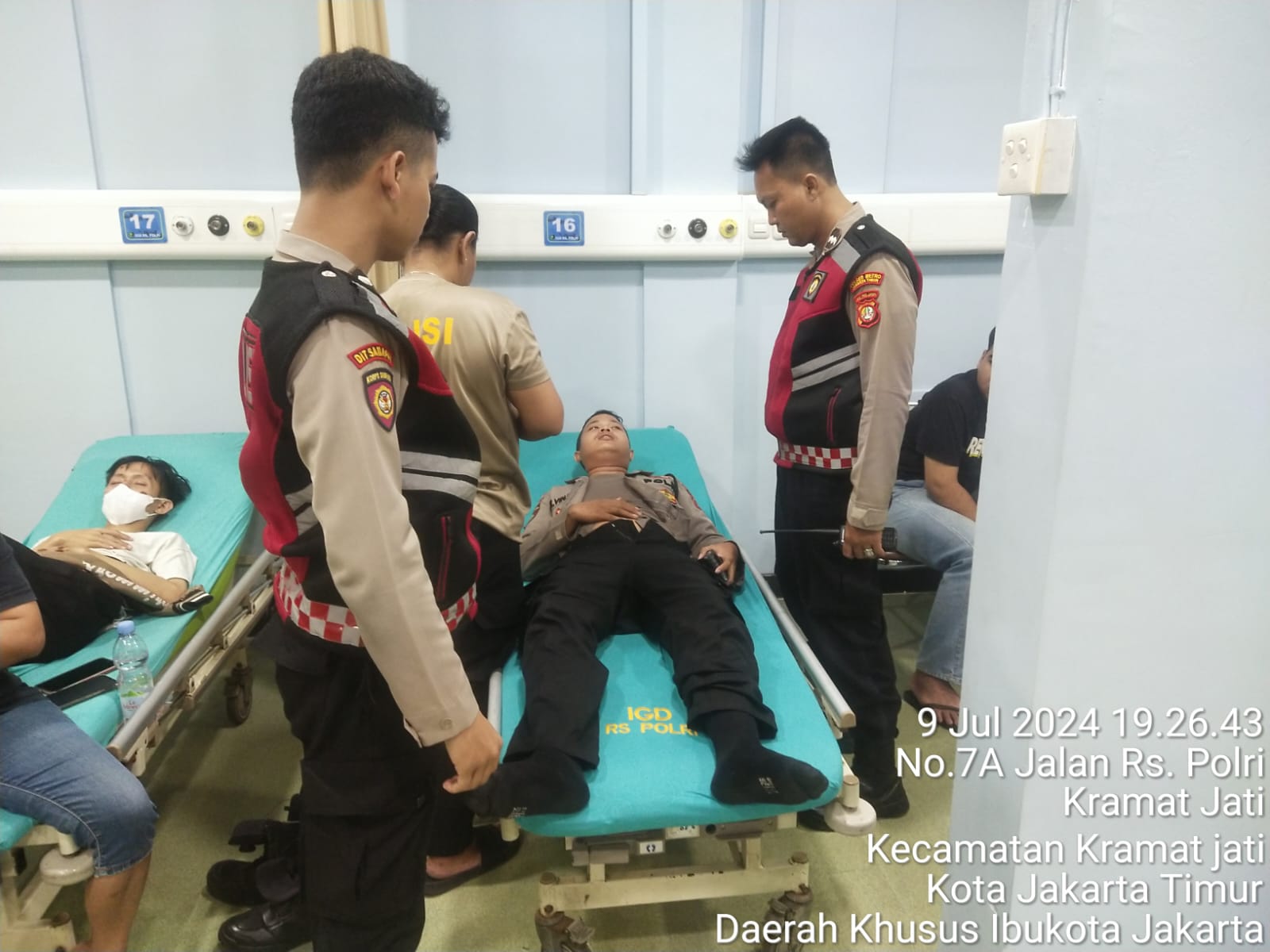 Dan kemudian anggota tersebut dievakuasi dan dibawa ke RS Polri oleh Tim Dokkes Polres Jakarta Timur untuk mendapatkan tindakan medis.