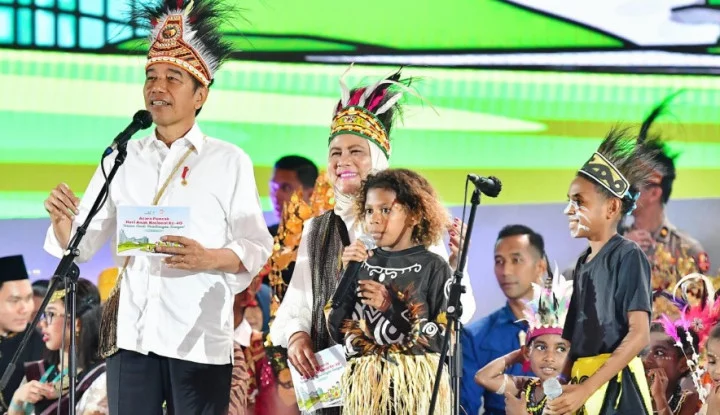 KS, JAKARTA – Perayaan Hari Anak Nasional (HAN) 2024, Presiden Jokowi mengapresiasi acara yang dilaksanakan secara besar-besaran dan anak-anak yang hadir juga ikut menikmatinya. “Ini mungkin pertama kali puncak Hari Anak Nasional diadakan di Papua dan dilaksanakan secara besar-besaran dan anak-anak menikmati. Saya juga tidak mau memberikan pidato sambutan karena ini harinya anak-anak. Tempat anak-anak berinteraksi, bermain, bersenang-senang,” ucap Jokowi dengan bangga.