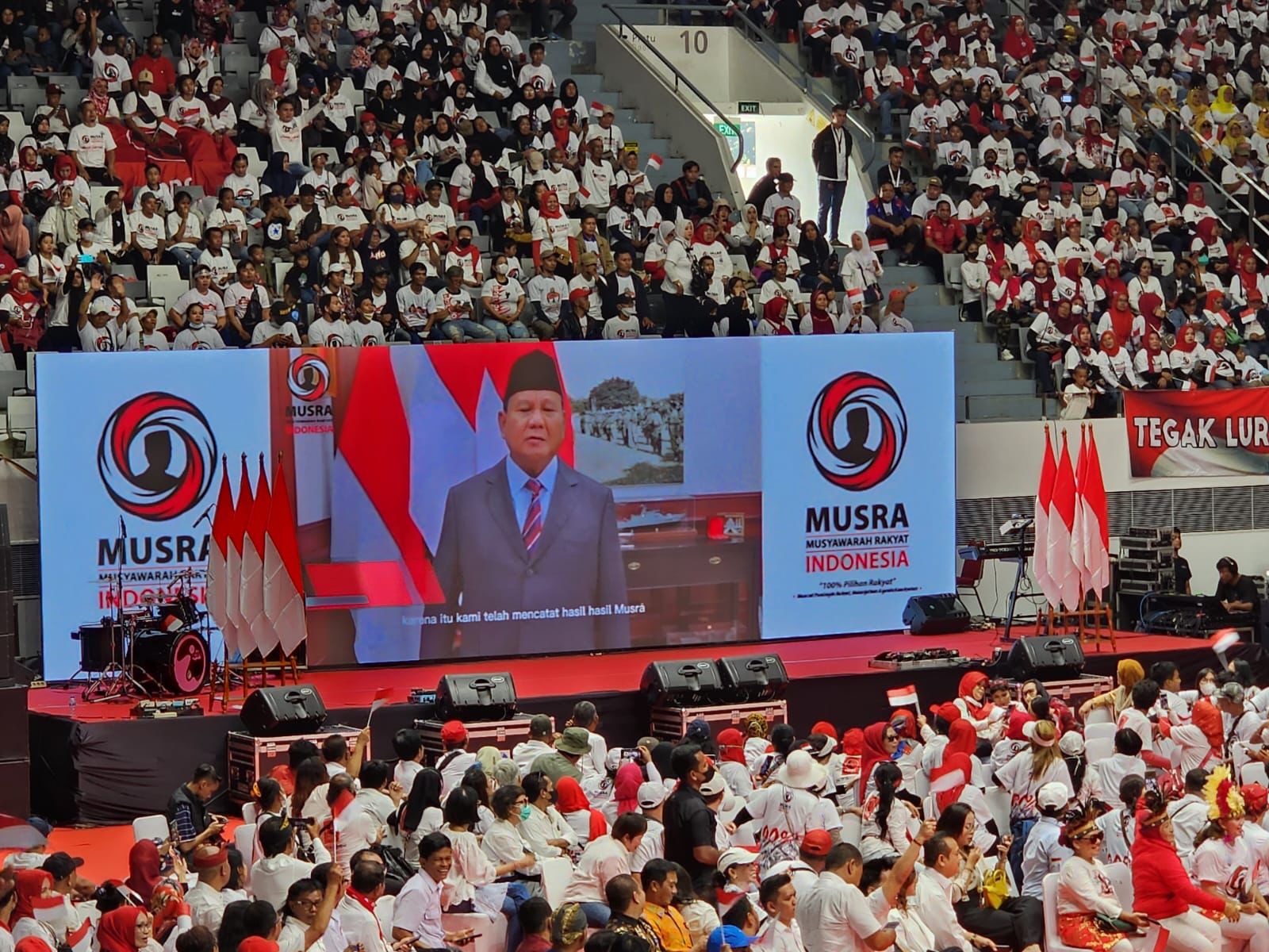 Adapun Jokowi mengatakan, pentingnya kepemimpinan yang kuat untuk menghadapi ketidakpastian dunia ini. “Sekali lagi ke depan negara ini butuh kepemimpinan yang kuat dan mampu menghadapi ke tidakpastian dunia. Kita butuh kepemimpinan yang kuat. Setuju?“