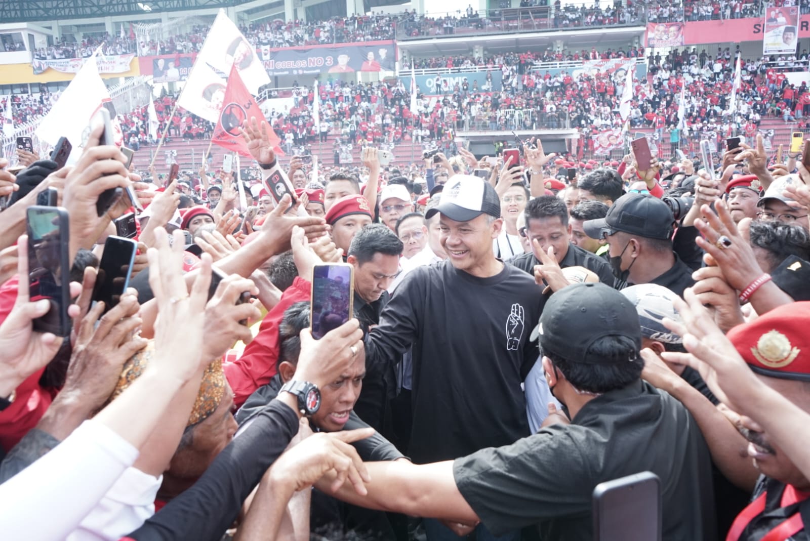KS, JAKARTA – Calon presiden (capres) nomor urut 03 Ganjar Pranowo hari ini menghadiri kampanye akbar di GOR Delta Sidoarjo. Ganjar hadir ditemani oleh istrinya Siti Atiqoh. Hadir pula Puan Maharani, Yenny Wahid, Harry Tanoesudibjo, dan beberapa tokoh pendukung Ganjar-Mahfud.