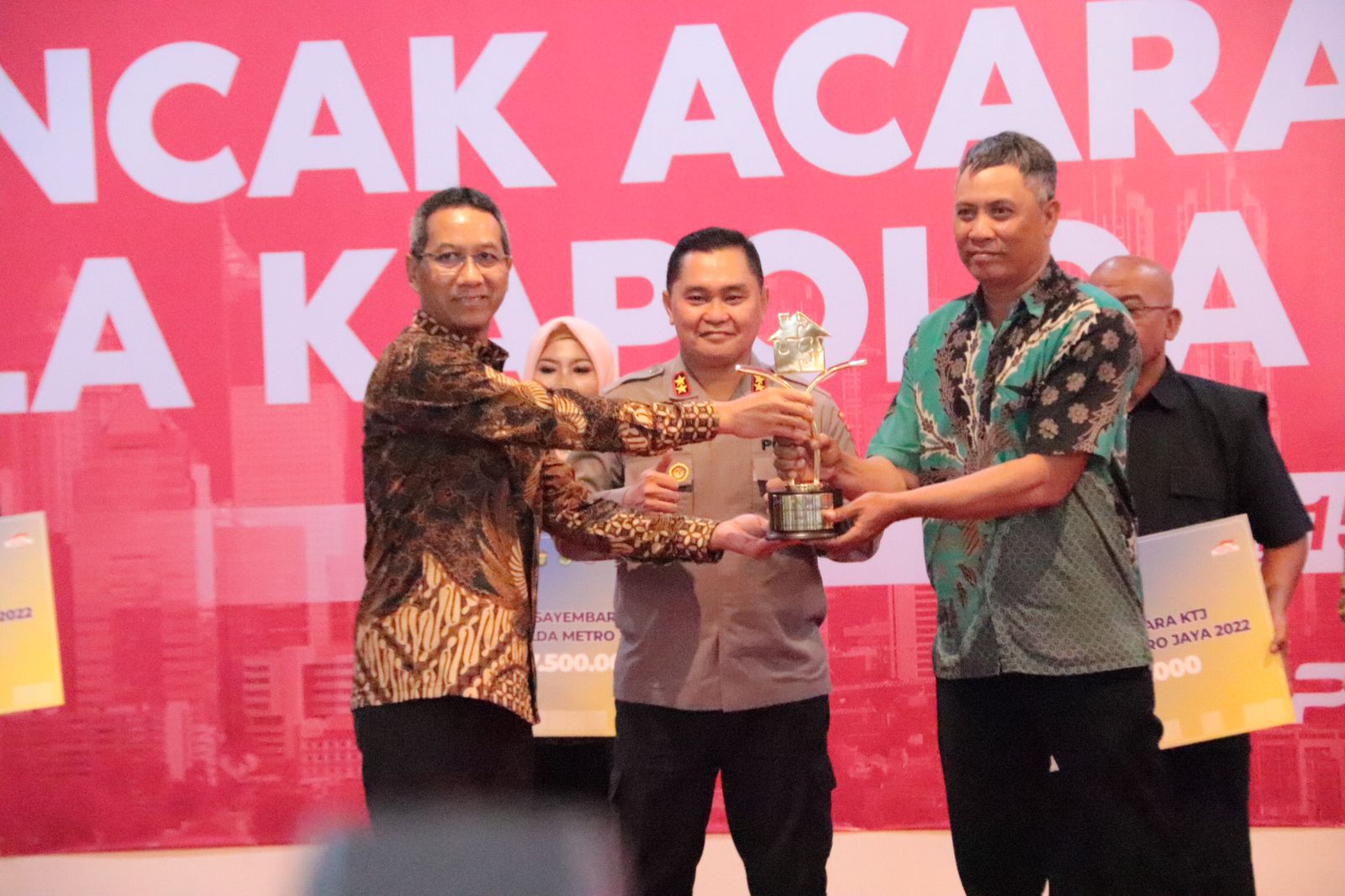 KS, JAKARTA – Kapolda Metro Jaya Irjen Pol Moh Fadil Imran, bersama dengan PJ Gubernur DKI Jakarta Heru Budi Hartono dan Chief Of Corporate Affairs PT. Astra Riza Deliansyah memberikan Apresiasi kepada Pemenang Sayembara Kampung Tangguh Jaya binaan Polda Metro Jaya, Kamis (15/12/22)