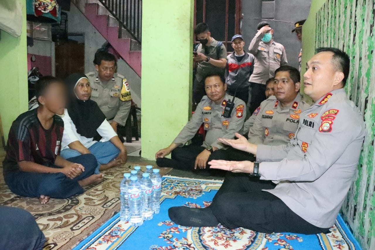KS, JAKARTA – Kapolres Metro Jakarta Barat Kombes Pol Pasma Royce mendatangi kediaman salah satu pelajar yang diamankan karena terlibat aksi tawuran.