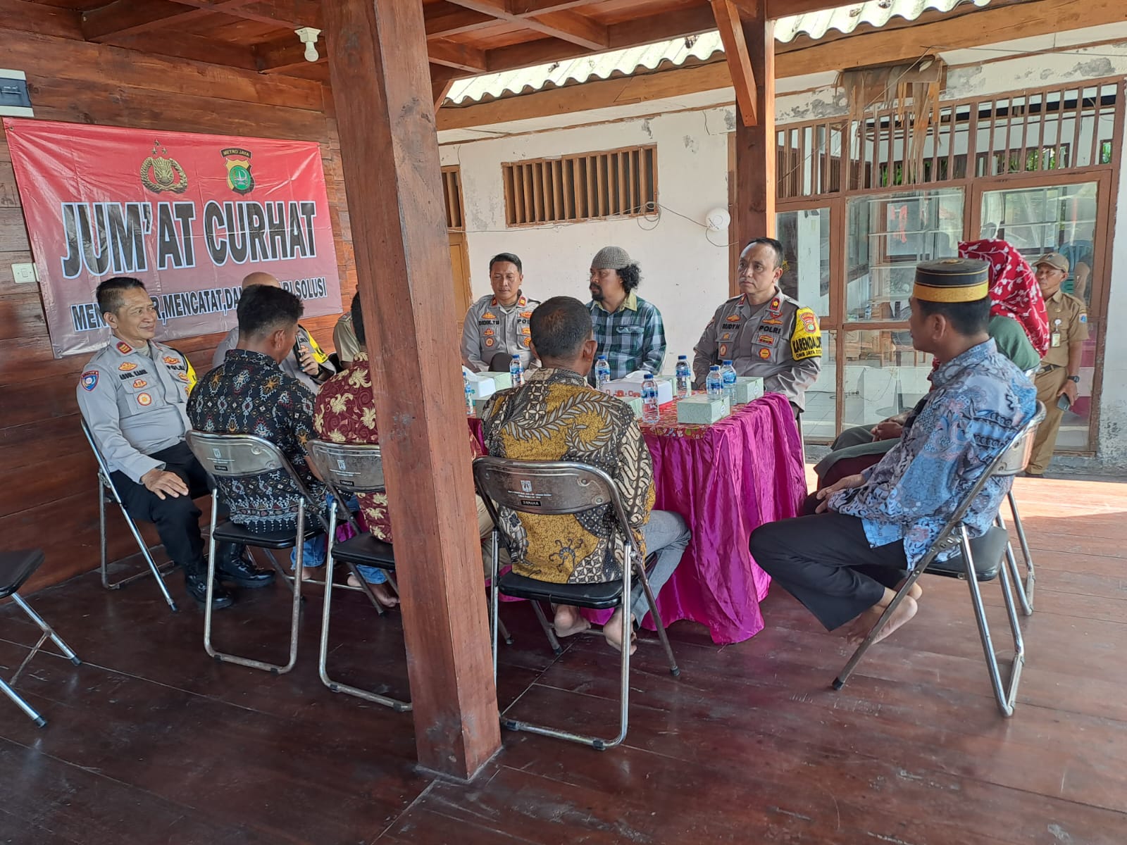 KS, JAKARTA – Kapolres Kepulauan Seribu AKBP Jarot Sungkowo, S.H., S.I.K., bersama Pejabat Utama Polres, menggelar kegiatan Jumat Curhat di Pulau Sabira, Pulau Terjauh Kepulauan Seribu, Jumat (15/12/2023). Bertempat di Rumah Adat Pulau Sabira, RT 001/003 Kelurahan Pulau Harapan, Kecamatan Kepulauan Seribu Utara, kegiatan ini bertujuan untuk mendialogkan, mendengarkan, mencatat, dan mencari solusi terhadap permasalahan kamtibmas yang dihadapi oleh masyarakat.
