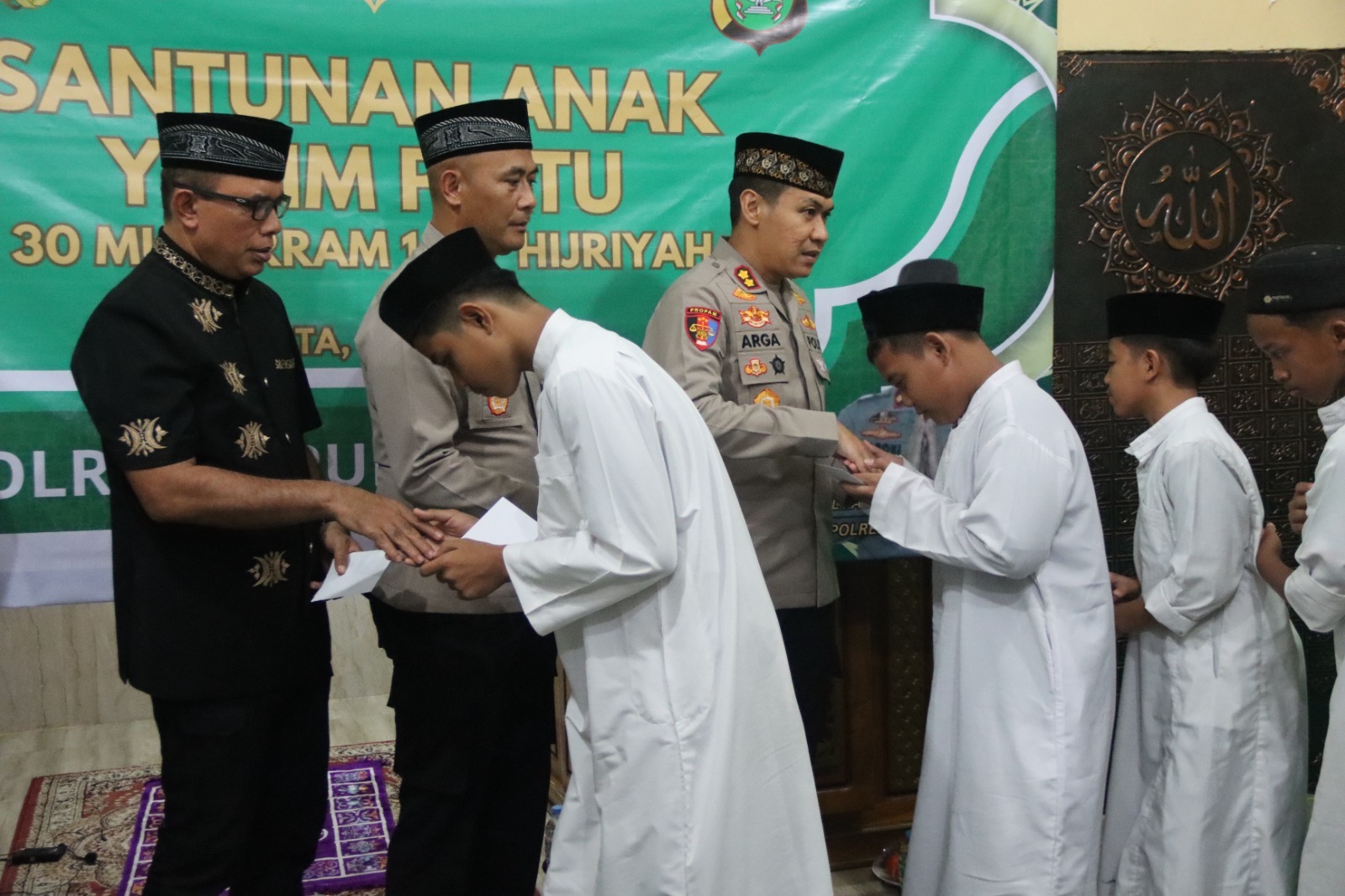 Selanjutnya, kegiatan diisi dengan pembacaan Surah Yasin, tahlil, dan doa bersama yang dipimpin oleh Ustad Muamar Qadafi, S.Sos., M.Pdi. Acara puncak ditandai dengan penyerahan santunan secara langsung kepada 30 anak yatim oleh Kapolres, dilanjutkan dengan sesi foto bersama dan ramah tamah sebagai bentuk kedekatan antara Polri dan masyarakat.