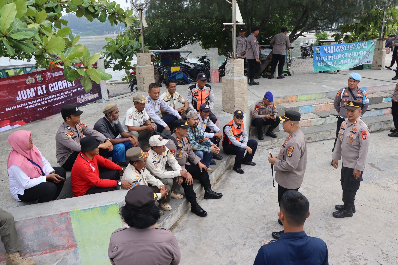 KS, JAKARTA – Kapolres Kepulauan Seribu, AKBP Jarot Sungkowo, S.H., S.I.K., melaksanakan kegiatan “Jumat Curhat” di halaman Polsek Kepulauan Seribu Selatan, Kelurahan Pulau Tidung, Kepulauan Seribu pada Jumat (01/09/2023). Kegiatan ini memiliki tujuan utama untuk mewujudkan dialog terbuka antara kepolisian dan masyarakat, guna mendengarkan aspirasi, mencatat permasalahan, dan menyediakan solusi yang tepat untuk meningkatkan keamanan dan ketertiban di Pulau Seribu.