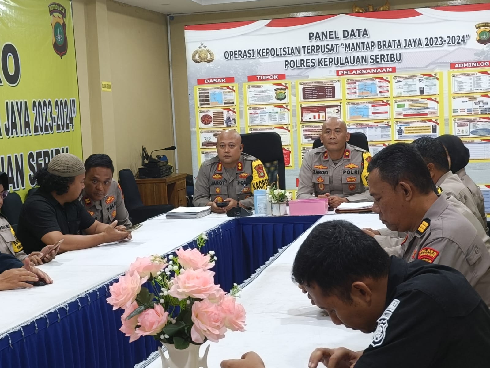 KS, JAKARTA – Kapolres Kepulauan Seribu AKBP Jarot Sungkowo, S.H., S.I.K, bersama dengan pejabat utama Polres Kepulauan Seribu, turut serta dalam kegiatan nonton bareng (Nobar) secara virtual pameran lukisan dan pentas musik “Jogja Asik,” yang mengusung tema “Jogja Bermusik untuk Indonesia Apik.” Kegiatan Nobar Virtual tersebut berlangsung di Aula Wichaksana Laghawa Polres Kepulauan Seribu, pada Jumat (19/01/2024).