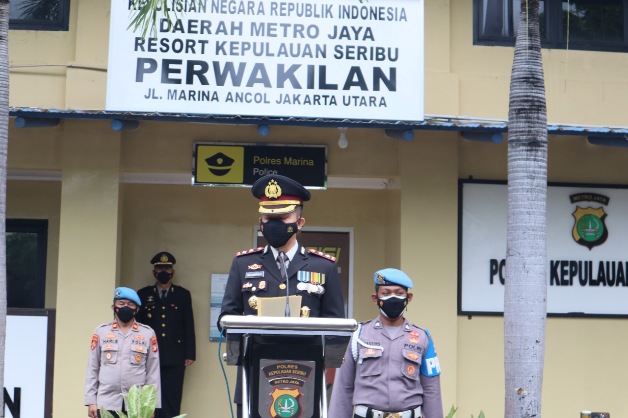KS, JAKARTA – Kapolres Kepulauan Seribu AKBP Eko Wahyu Fredian, S.I.K memimpin upacara peringatan Hari Pahlawan Tahun 2022 yang dilaksanakan oleh Polres Kepulauan Seribu di Lapangan Apel Kantor Perwakilan Polres Kepulauan Seribu Marina Ancol Jakarta, Kamis (10/11/2022).