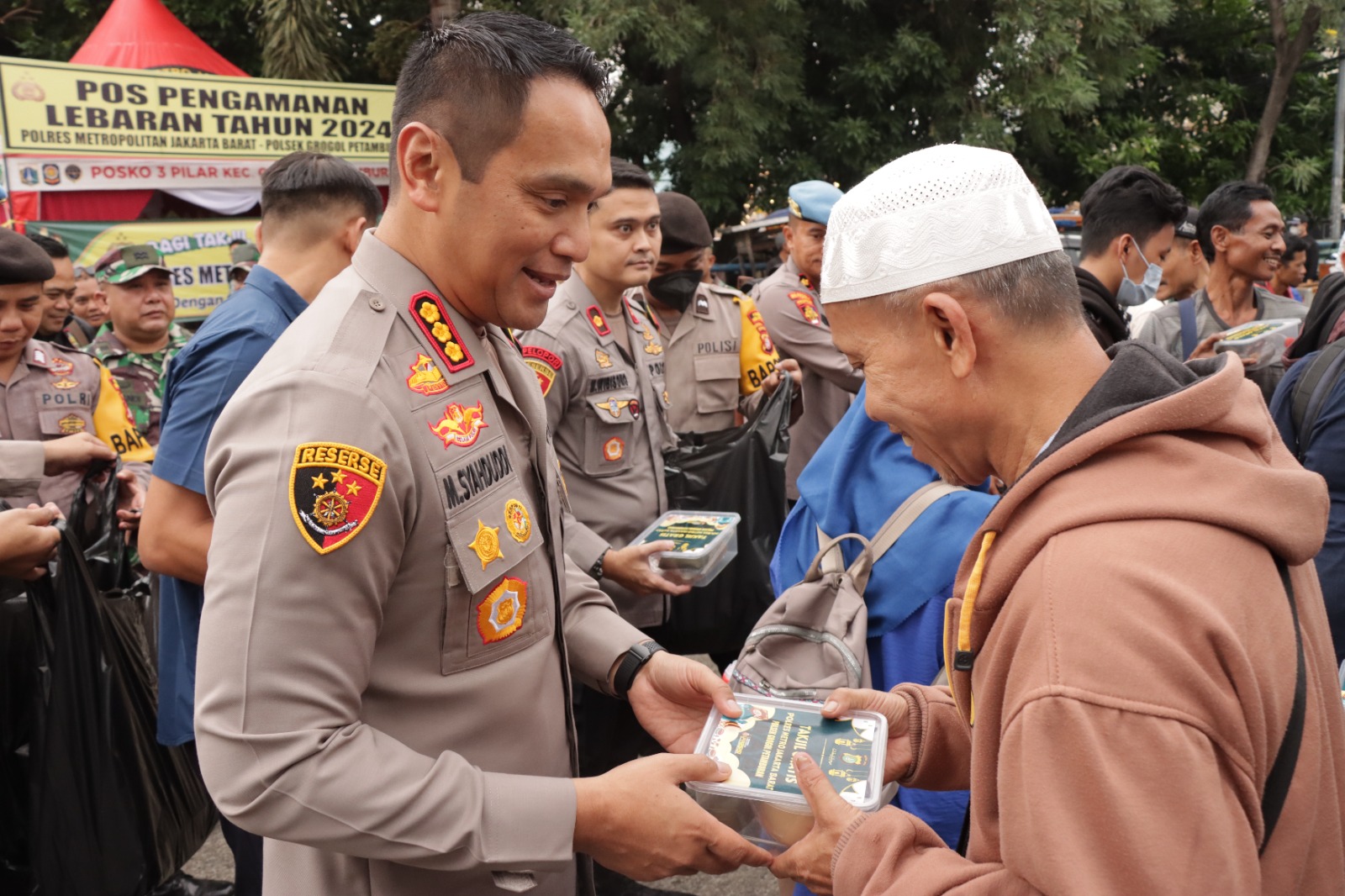 Dalam kesempatan tersebut Kapolres Metro Jakarta Barat Kombes Pol M Syahduddi didampingi Kapolsek Grogol Petamburan Kompol Muharram Wibisono dan juga 3 Pilar Grogol Petamburan membagikan makanan buka puasa (takjil) kepada pemudik.