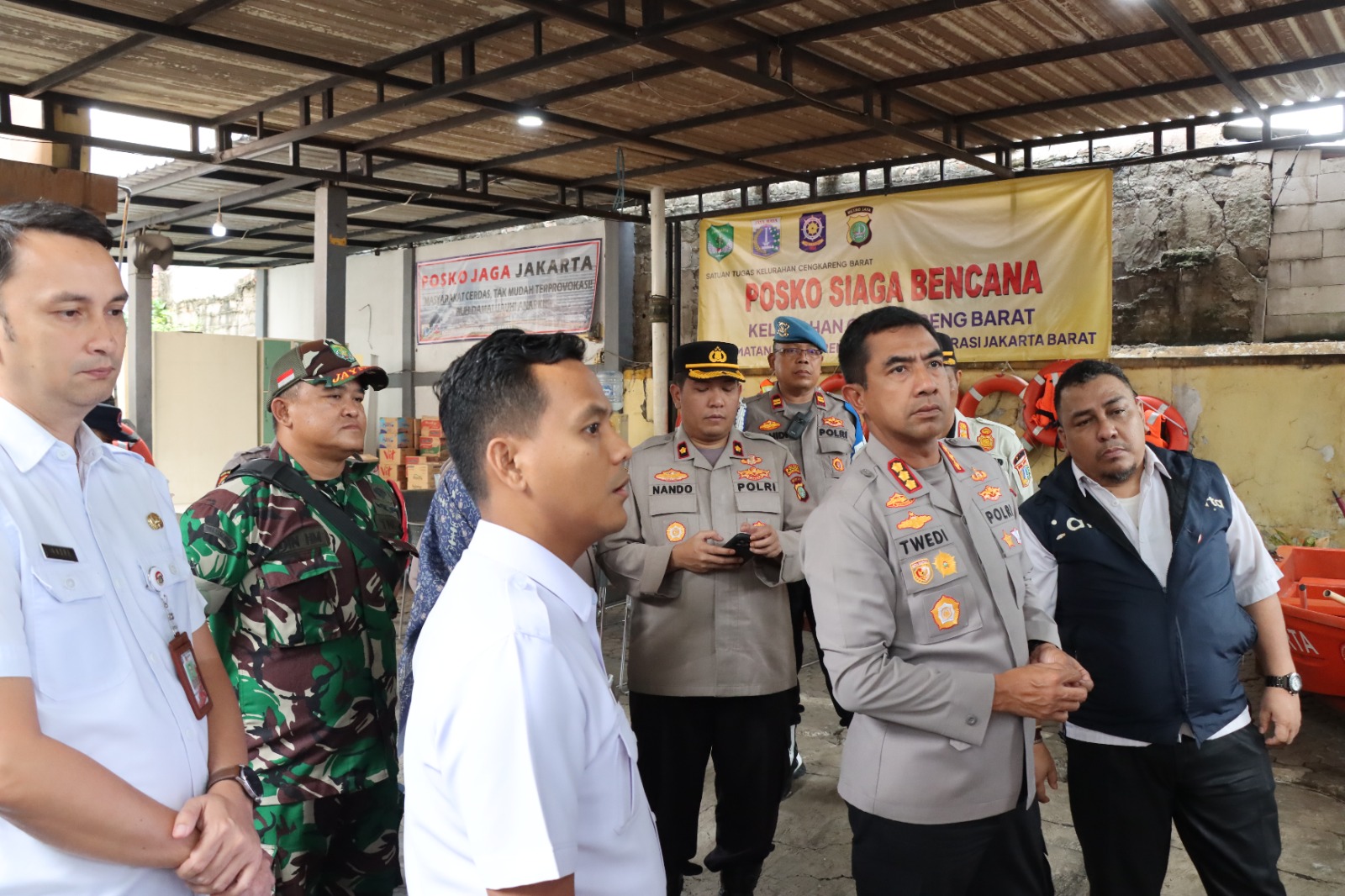 Didampingi sejumlah pejabat utama Polres Metro Jakarta Barat, Kapolres mengunjungi Posko Siaga Bencana 3 Pilar di Kelurahan Tegal Alur, Kecamatan Kalideres, serta Posko Siaga Bencana yang berada di Kantor Kelurahan Cengkareng Barat.