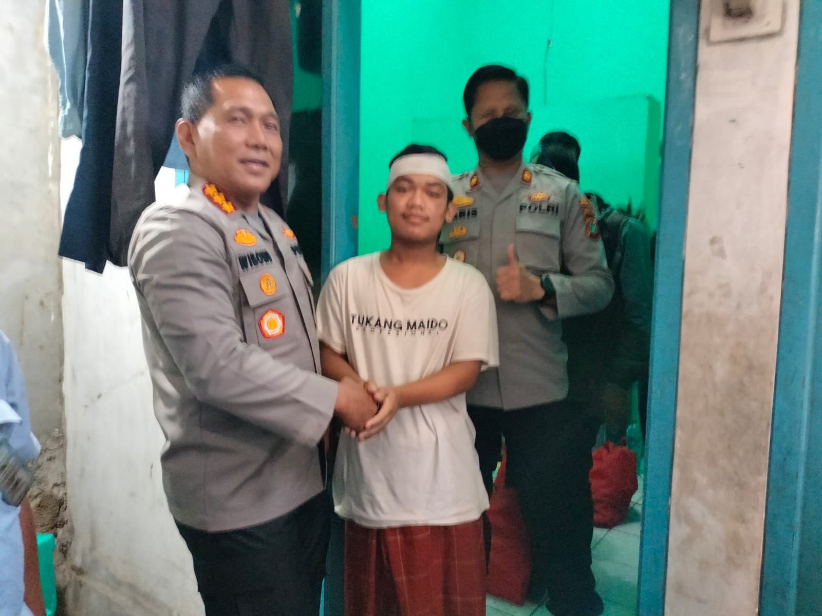 Kapolres Metro Jakarta Utara Kombes Pol Wibowo menjenguk Korban Begal bernama Aditya Eka (18), yang mengalami luka bacokan 26 jahitan.