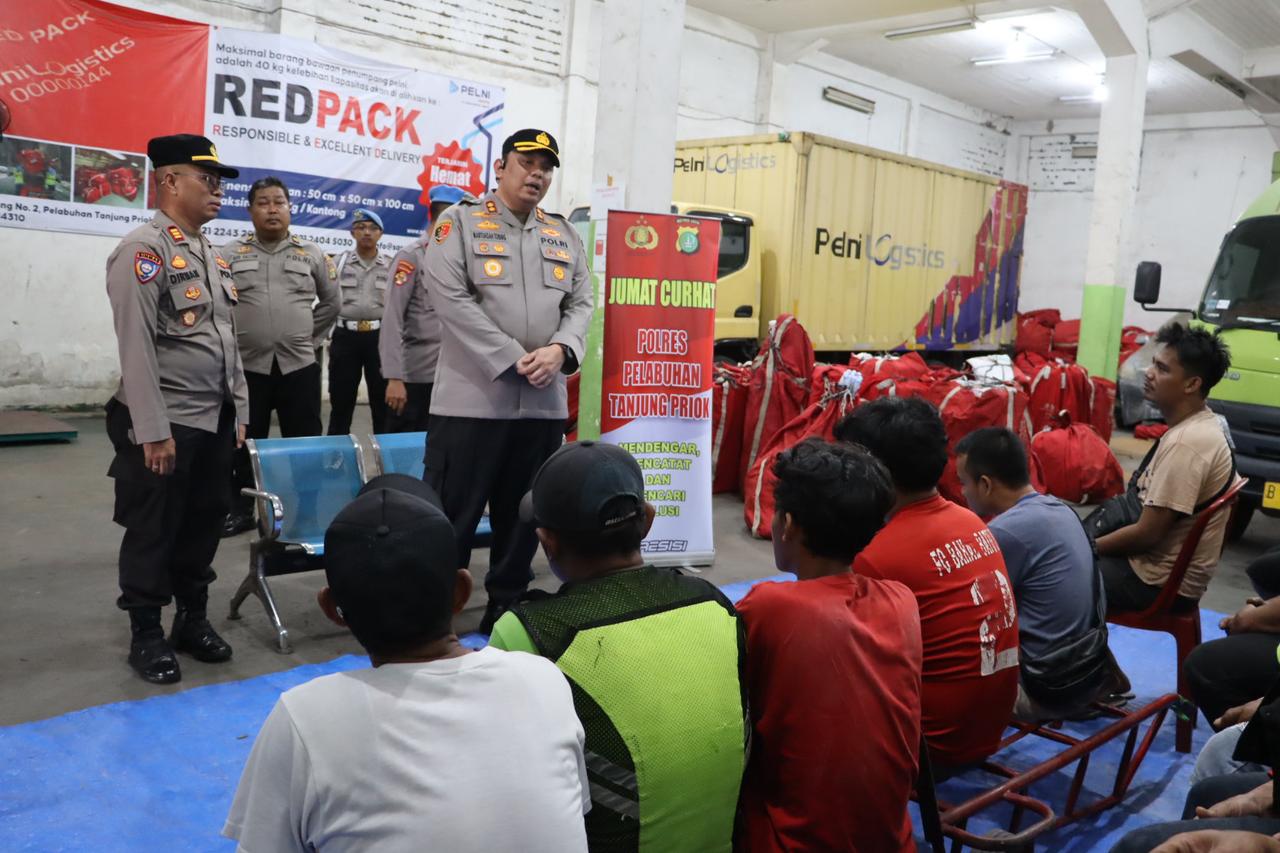 Setibanya di lokasi Jumat Curhat, Kapolres Pelabuhan Tanjung Priok menyampaikan bahwa kedatangan Polres Pelabuhan Tanjung Priok ingin silaturahmi kepada para buruh di Presmat Pelni Logistik. Bila ada kejadian agar melaporkan ke kami (Polres Pelabuhan Tanjung Priok).
